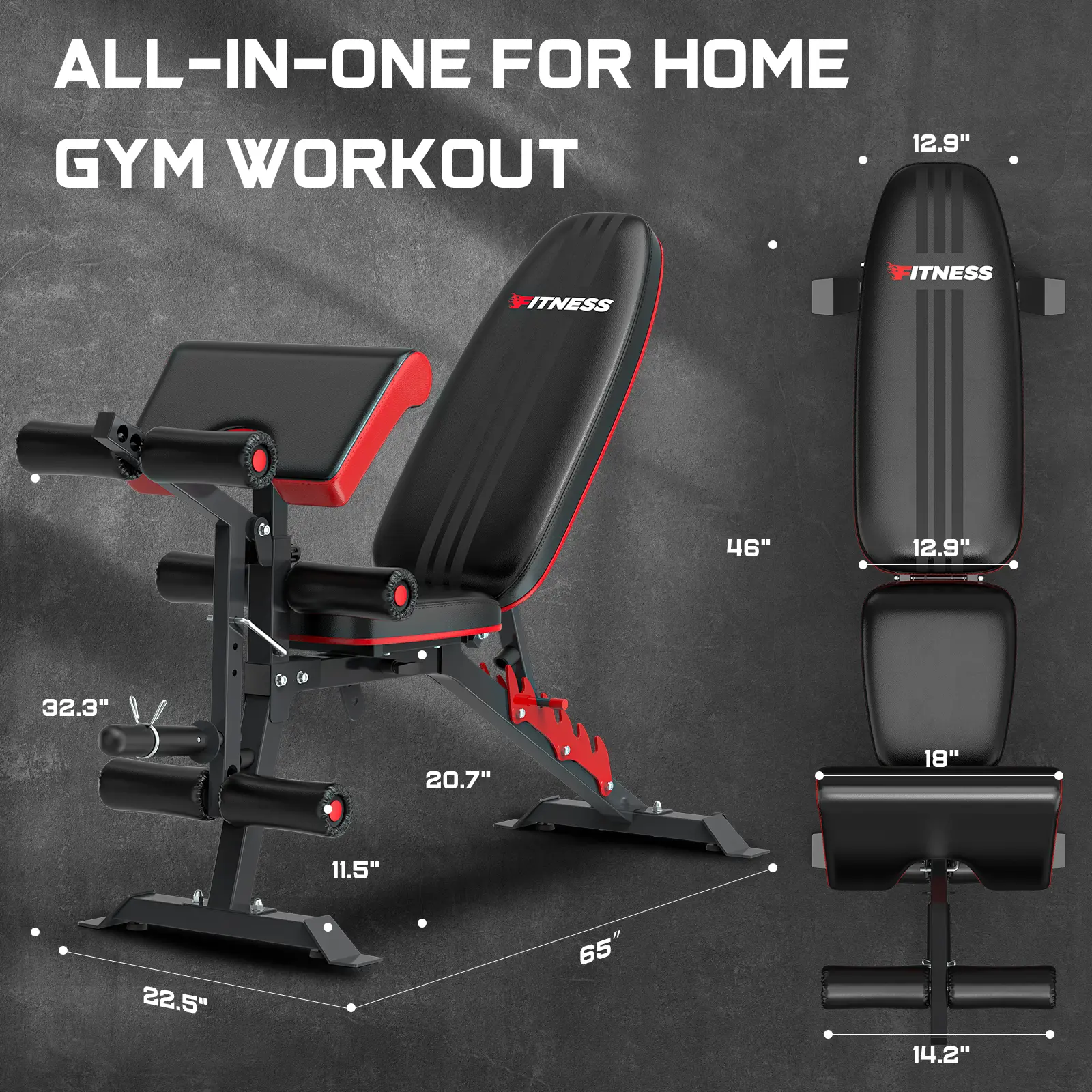 𝙈𝙐𝙇TI-𝙁𝙐𝙉𝘾𝙏𝙄𝙊𝙉𝘼𝙇 𝙒𝙀𝙄𝙂𝙃𝙏 𝘽𝙀𝙉𝘾𝙃: Built with welded main frame for superior strength and stability. With a 22.5" extra wide base, ensures rock-solid stability during intense workouts. Max Weight Capacity: 800 lbs.