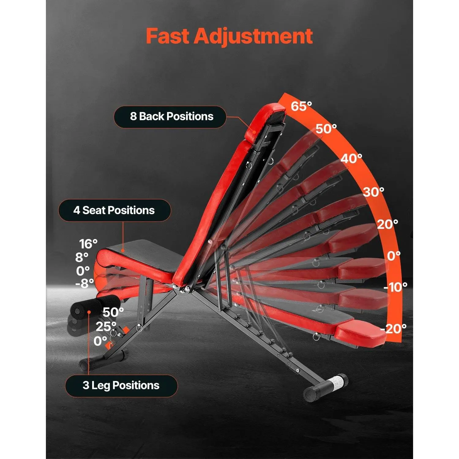 ·Adjustable and Multi-purpose: The adjustable strength training bench is designed with 8 back positions, 4 seat positions, and 3 footrest positions. Simply pull the quick-release bolts to adjust the position that suits you, and it will automatically lock into place. This full-range adjustment allows you to target and work all muscle groups during your workout