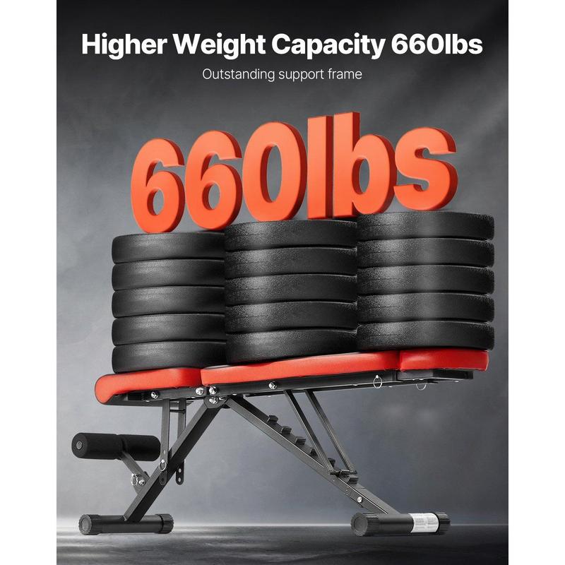 ·660lbs Heavy Duty Weight Capacity: The weight bench frame is made from 50x25xT1.5mm commercial-grade steel, with a weight capacity of 660lbs. It offers a sturdy structure, better stability, and support performance, making it ideal for entry-level users