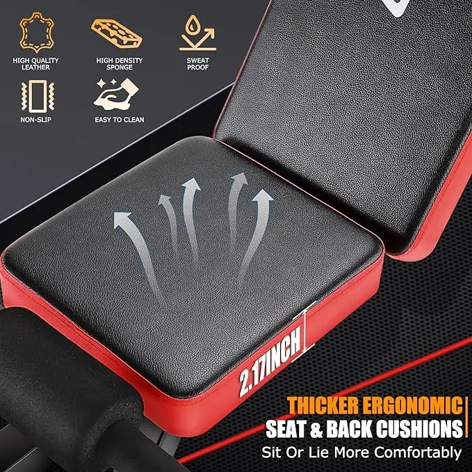 ·【Removable and Adjustable Foot Catch】The upgraded weight bench has an adjustable foot catch which supports your legs and keep your stability for decline movement, Removable legs can be attached to the front or back of the bench to facilitate your workout, the soft foam roller will protects your legs to avoid injuries while doing exercise.