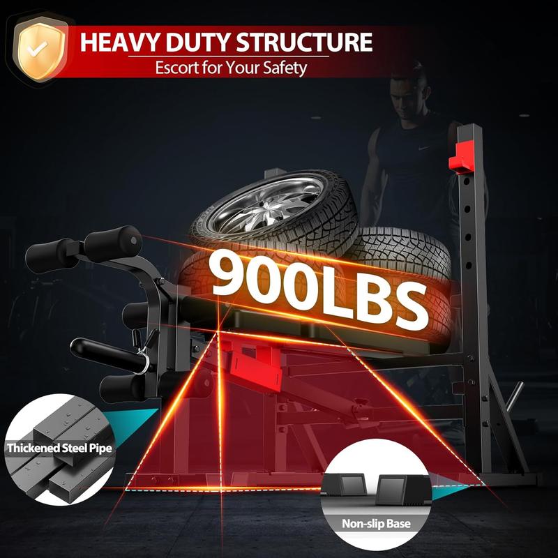 ·【Upgraded Comfort Design】The 2025 height-upgraded seat (21.26") provides taller users with extra legroom.The upgraded leg roller helps prevent bruising during ankle curls.The optimized leg developer enables a wider range of motion, ensures full muscle engagement, reduces incomplete leg extensions, and enhances comfort during leg workouts.The 38.2-inch wide rear frame offers ample space for arm movement and smoother exercises, compatible with 6FT to 7FT barbells.