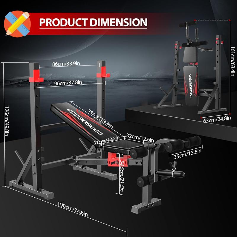 ·【Heavy-Duty & Safe Build】Engineered with a reinforced triangular steel frame and thickened support tubes,OPPSDECOR weight bench support a 900 LBS max weight capacity.Additional weight plates can be placed on the front and back tubes to further enhance stability.Anti-slip rubber feet and integrated weight plate anchors create a rock-solid foundation for bench press, ensuring high stability during high-intensity home gym workouts.