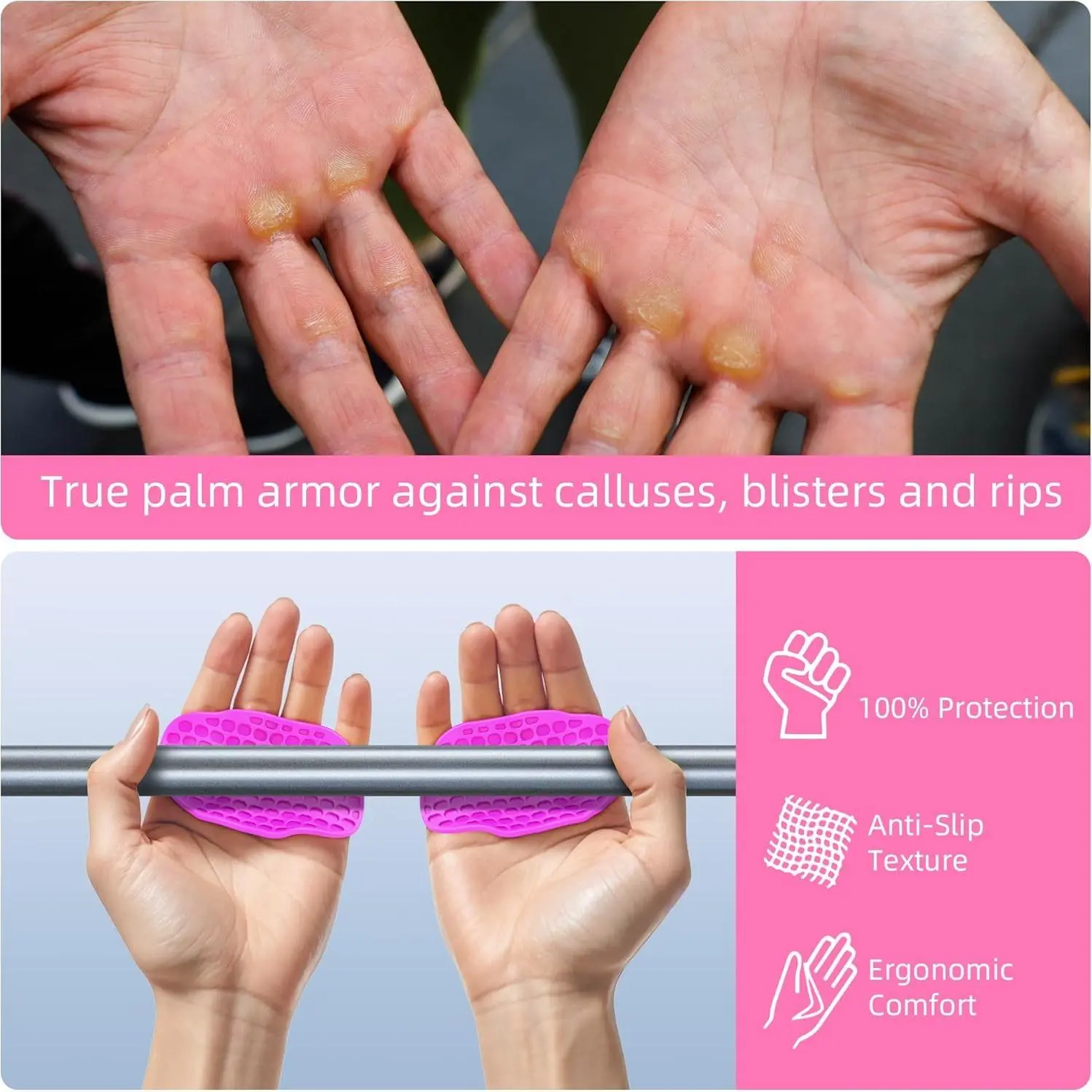 ·Very Comfortable Lifting Pads - The best Non-slip grip you can get during your workout. They are ideal for heavy lifting. The most popular Grip Pads among our customers. designed to significantly enhance friction and secure your hand hold on barbells or dumbbells, no more slips or lose grip of the barbell