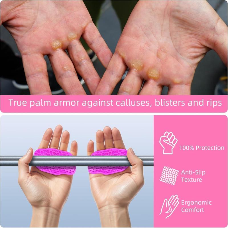·Rubber Gym Hand Grips - workout grips gloves come for weightlifting, strength training, bodybuilding, pull up, deadlift, crosstraining, hard pulls, shrugs, barbell rowing and upright rowing, many workouts and etc, one size fits men and women universal, the grips for gymnastics bars are small in size you carry