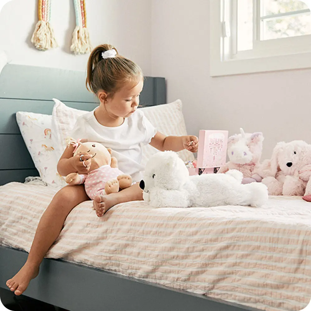 I purchased this for my niece who struggles with anxiety + sleep. I think she'll love the level of cuteness that comes with this bear, but I'm hoping it also helps her with her sleep!