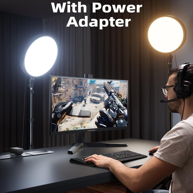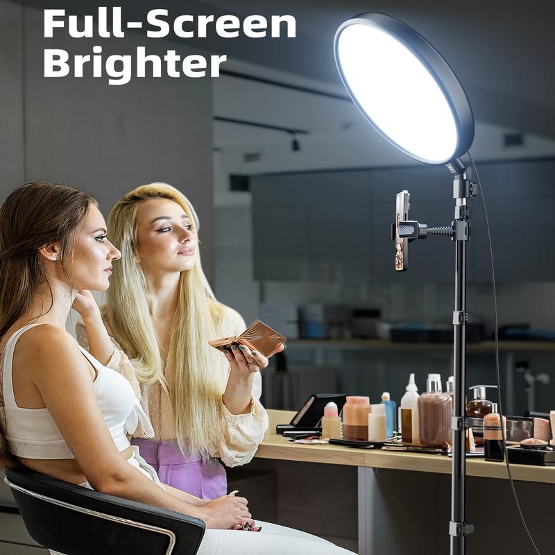 ·【Full-Screen & High Brightness】-Upgraded big ring light panel design, a maximum illumination of 6500K 8700Lux at 0.3m, to illuminate range wider, softer uniform lighting will give a brighter and more professional workspace