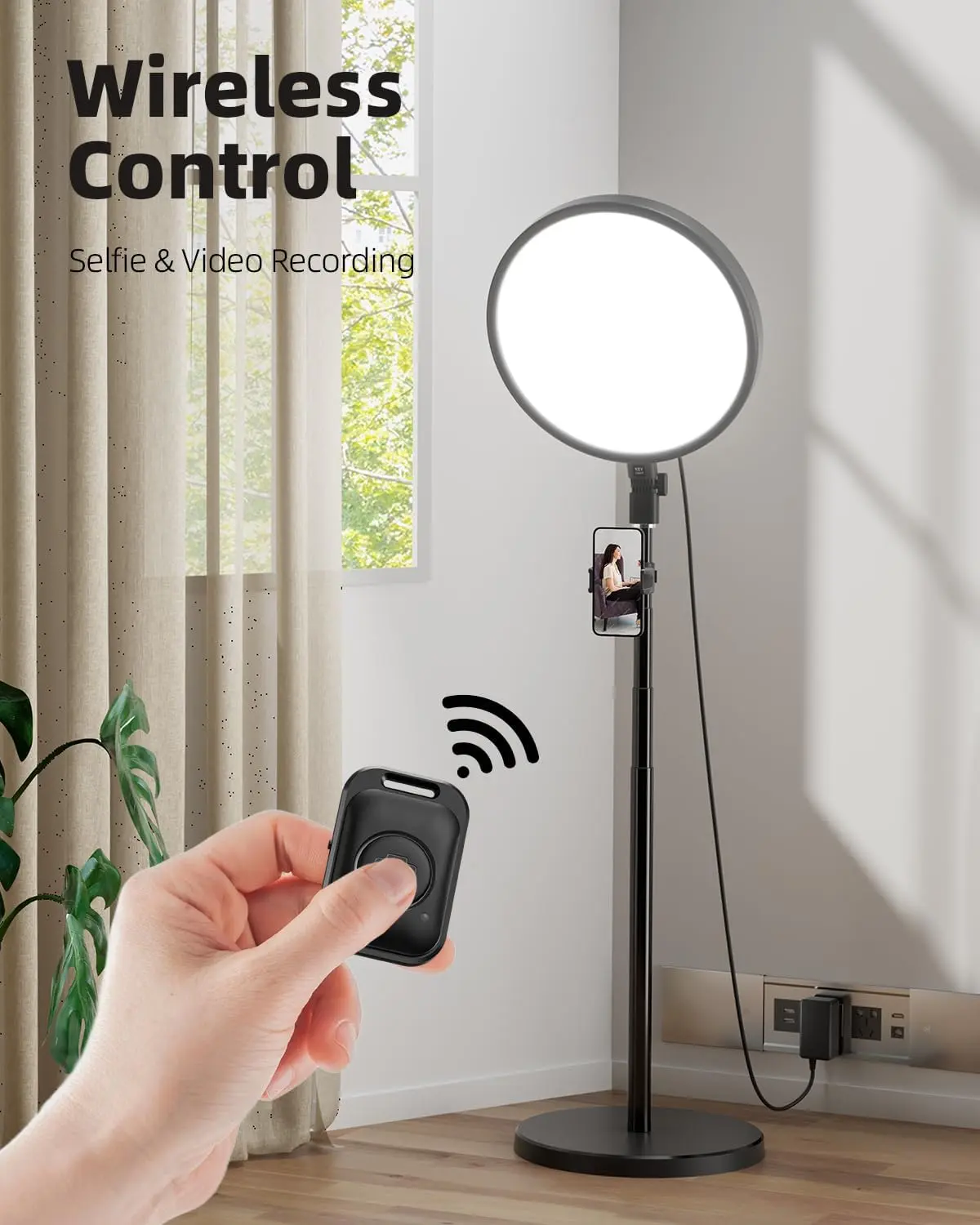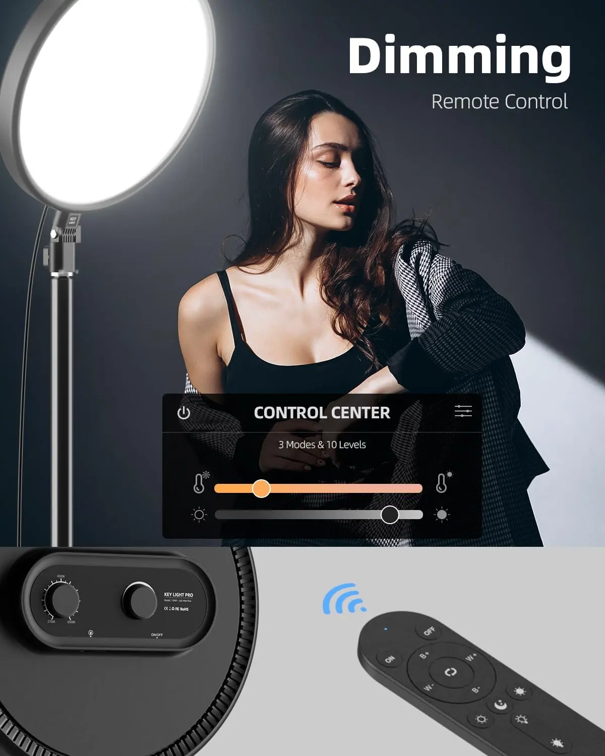 ·【Selfie Controller & Wireless Remote】-Our light ring with stand is equipped with 2 controller: wireless remote and Dimming remote control( Bright enough, color temperature ranging from 2700K to 6500K, 10%-100% brightness adjustable), selfie ring light with stand easy to one-click to shoot