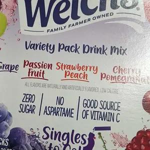 Each serving contains just 5 calories and is aspartame-free, making it a great choice for those looking for a guilt-free and refreshing drink. Simply pour a packet into your water bottle, shake, and enjoy the vibrant fruit flavors that Welch's is known for. With no sugar added, it's a great way to stay refreshed without compromising on taste.