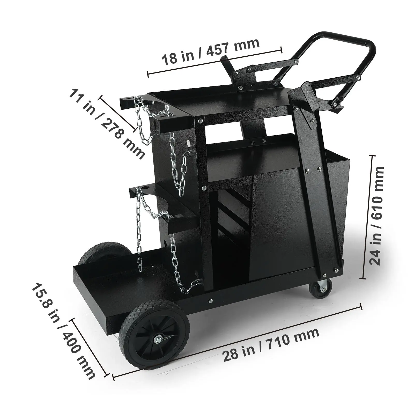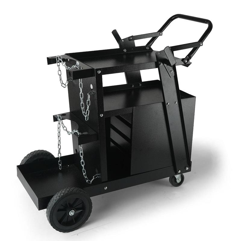 • A Practical Tool for Welding: Two 2.9-inch (7.2cm) front swivel casters support 360-degree flexible rotation, and two 7-inch (17.5cm) large rear casters ensure the stability of moving especially with heavy loads. High-quality PVC wheels can absorb shock, provide silent operation without floor scratches. Anti-slip handle makes pushing and pulling labor-saving. Adjustable inclined top shelf ensures the safety of each welding machine at all times by adjusting the center.