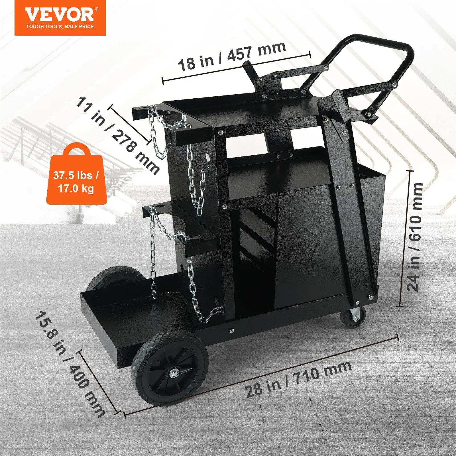 • Strong Weight Capacity: VEVOR 2-tier welding cart can effortless handle various heavy loads, with 265LBS maximum static weight capacity and 220LBS maximum dynamic weight capacity. Heavy-duty welder cart is suitable for a variety of welding tasks such as manual welding, gas shielded welding, and argon arc welding. A versatile solution that meets your mobile welding needs !
