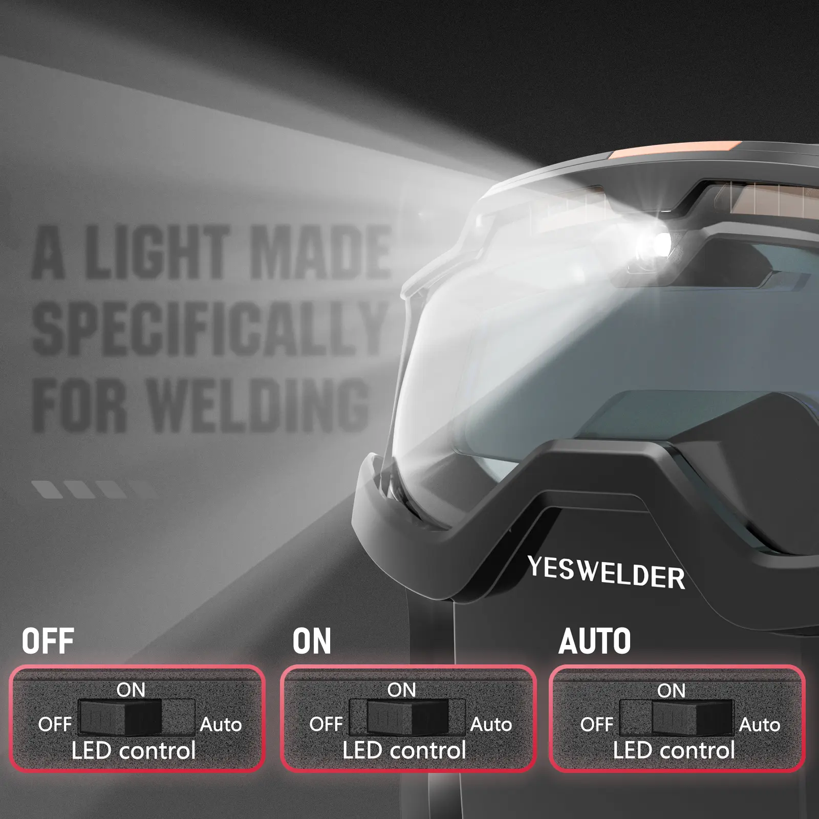 ·Choose between OFF, ON, or an intelligent Auto mode that automatically adjusts light output based on ambient conditions, ensuring clear visibility for every weld.