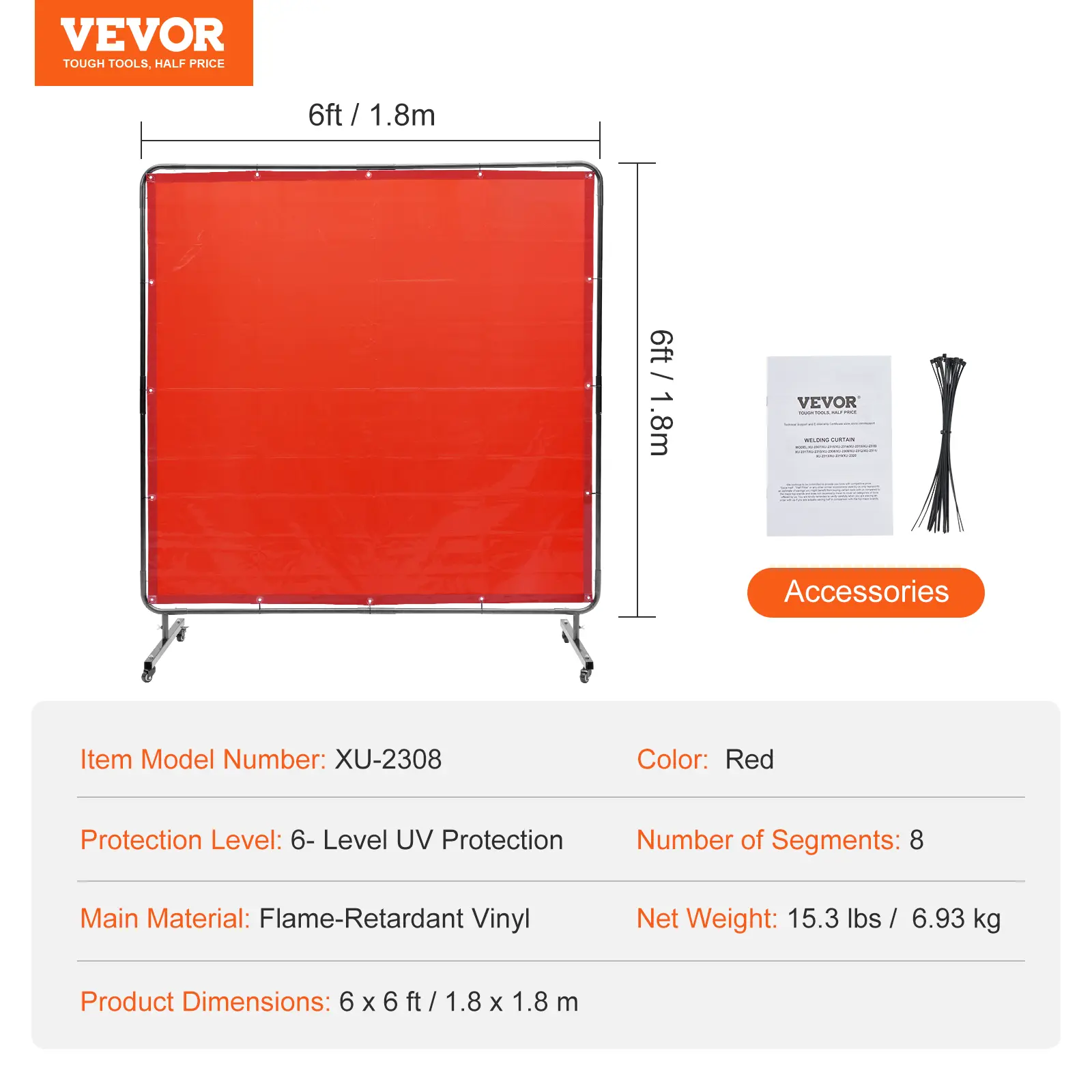 • Super Large Coverage: With a spacious 6'x 6' protective size, VEVOR welding screen with frame provides board and maximum protection for your workspace and welding projects. Keep your welding area isolated and minimize the impact of sparks, splatter, UV flash, and heat radiation.