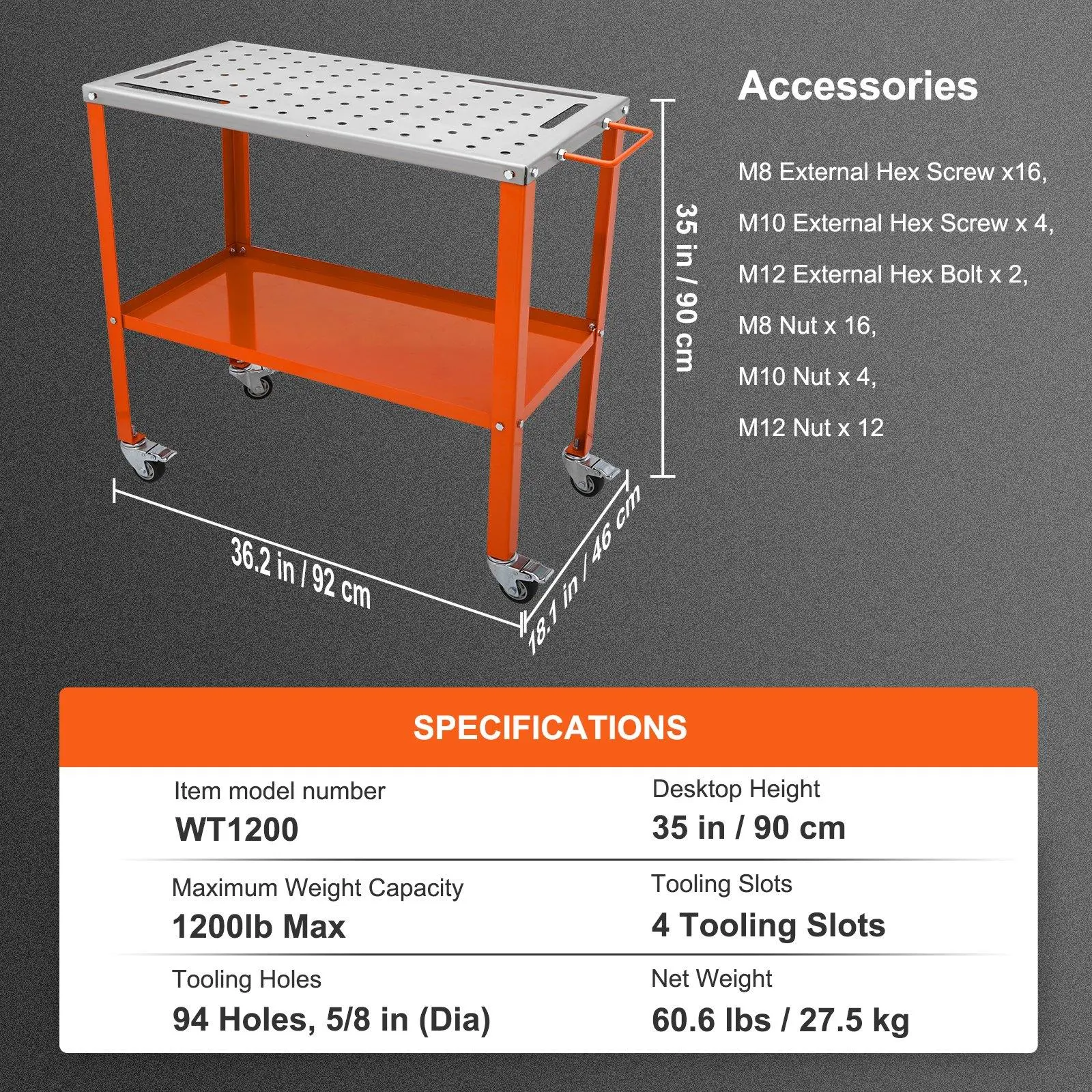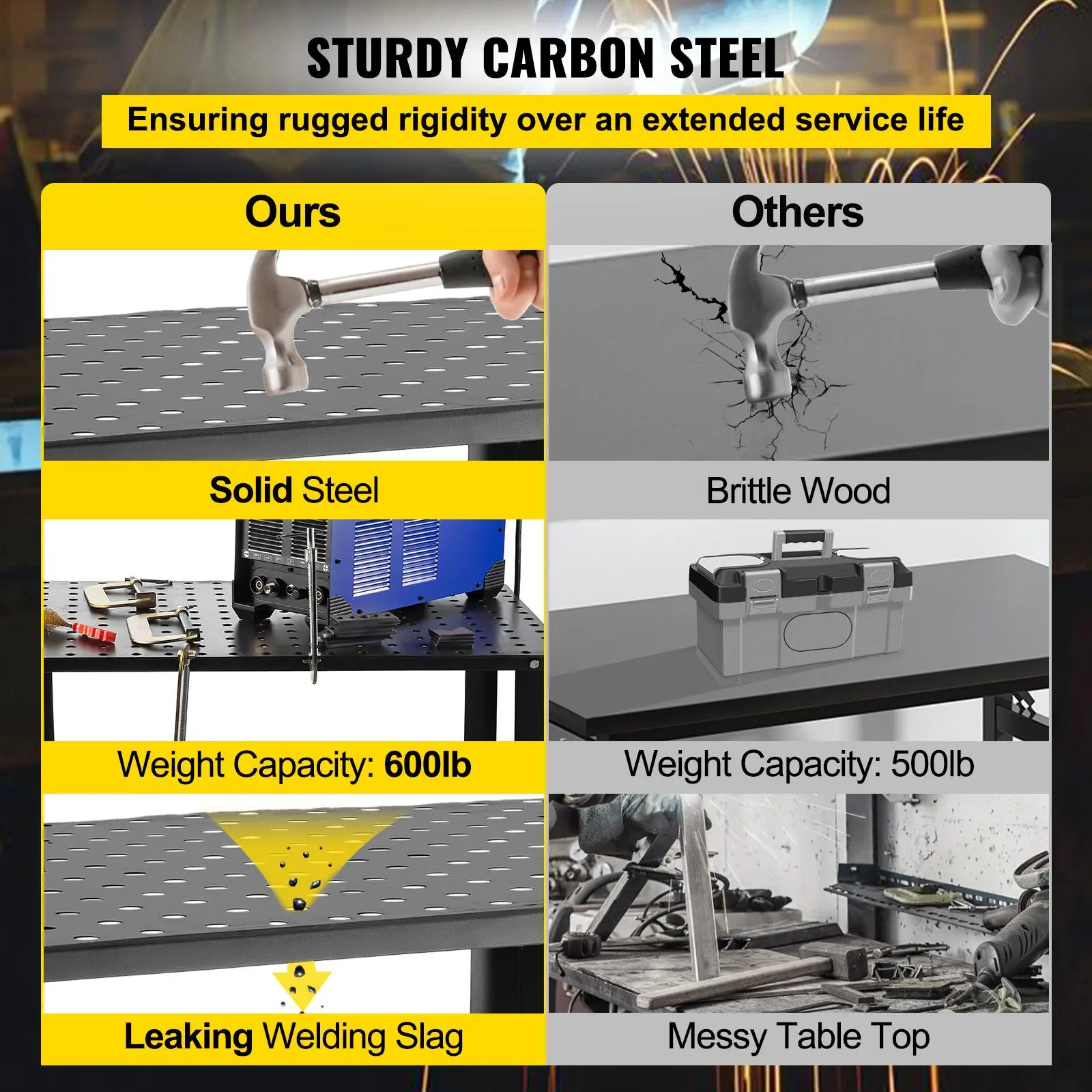 • 600lbs Load Capacity: Steel-reinforced frame makes it super sturdy to support up to 600 lbs. The welding table is solid and durable for heavy-duty equipment.
