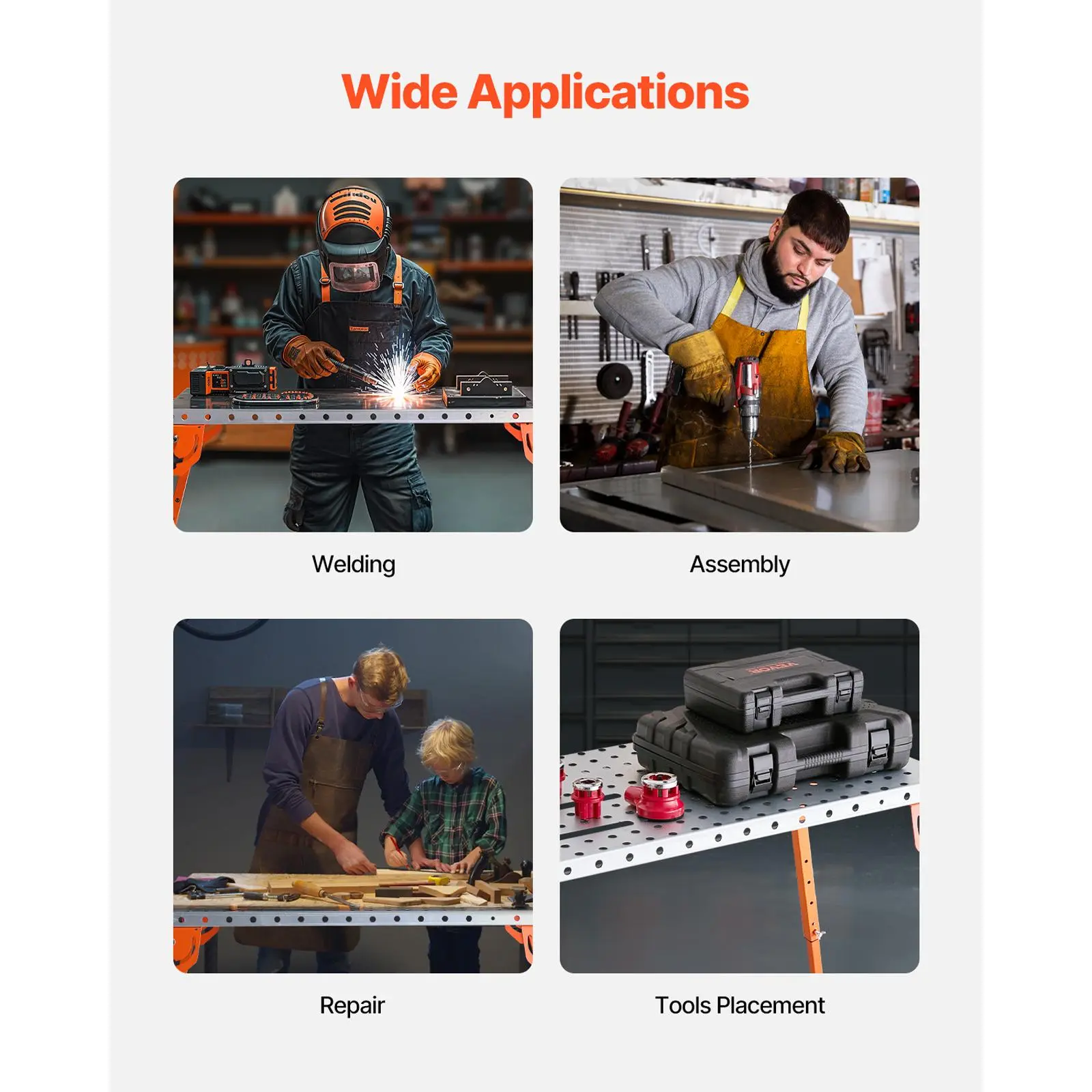 • Effortless Assembly: This welding workbench comes with a pre-installed tabletop and 4 legs, eliminating the complex assembly process. Perfect for repair shops and workshops, it allows you to handle welding tasks with ease and high efficiency.