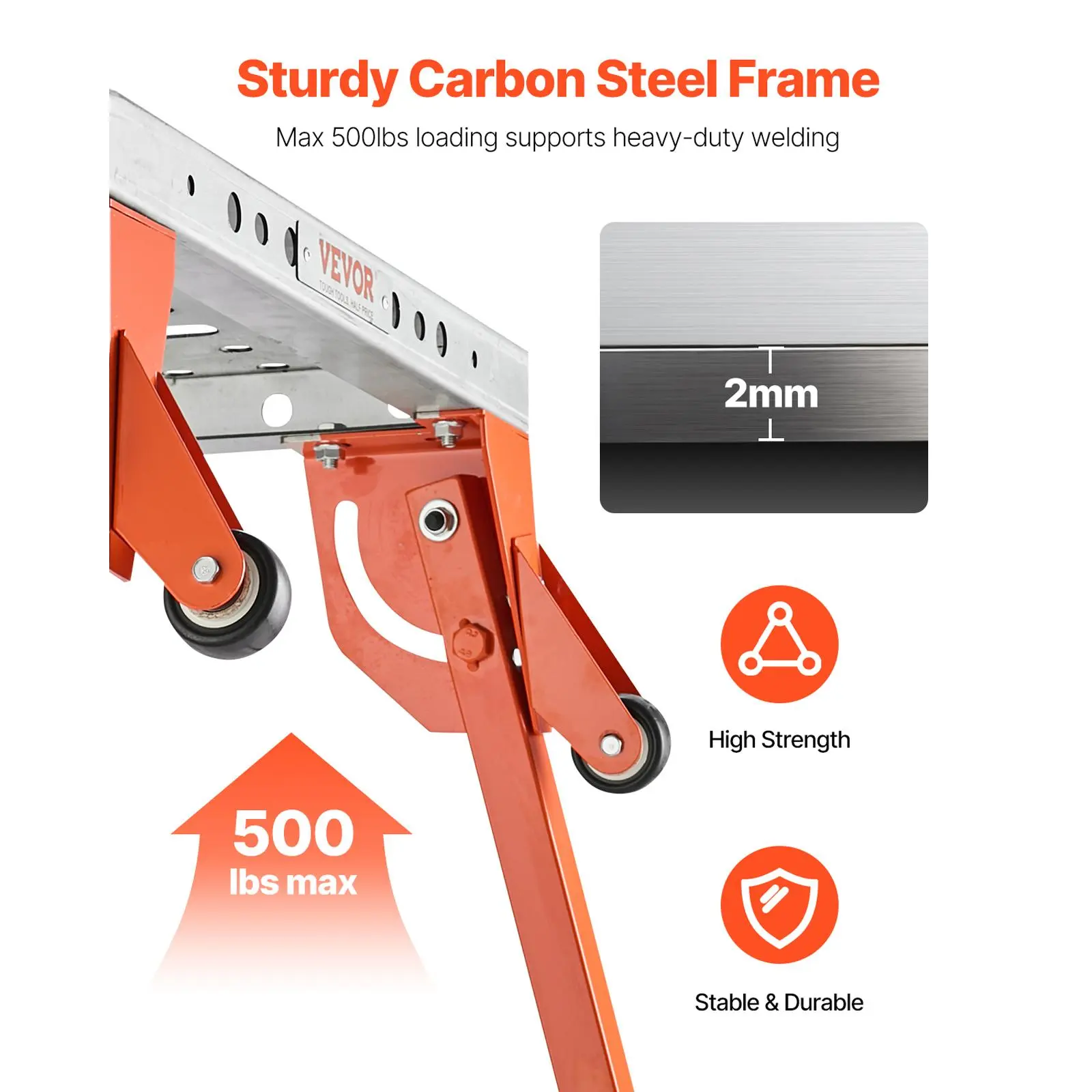 • Strong Weight Capacity: Crafted with a sturdy carbon steel frame, the welding table supports up to 500 lbs load-bearing. High-strength frame delivers superior weight capacity, wear and rust prevention, providing stable support for your welding projects.