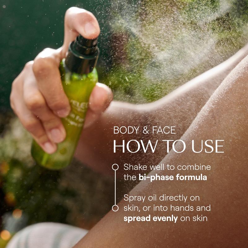 It's as easy as shake, spray and GLOW! ✨Enjoy the celebrations and get your glow on with Skin Food Ultra-Light Dry Oil 💚 #WeledaSkinFood #NaturalSkincare #GlowySkin