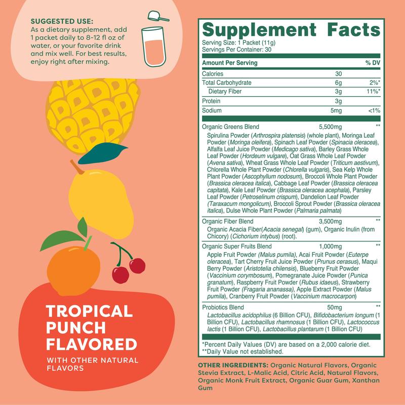 Daily Greens + Superfruits Stick Packs | 30 Servings Immune Boost Dietary