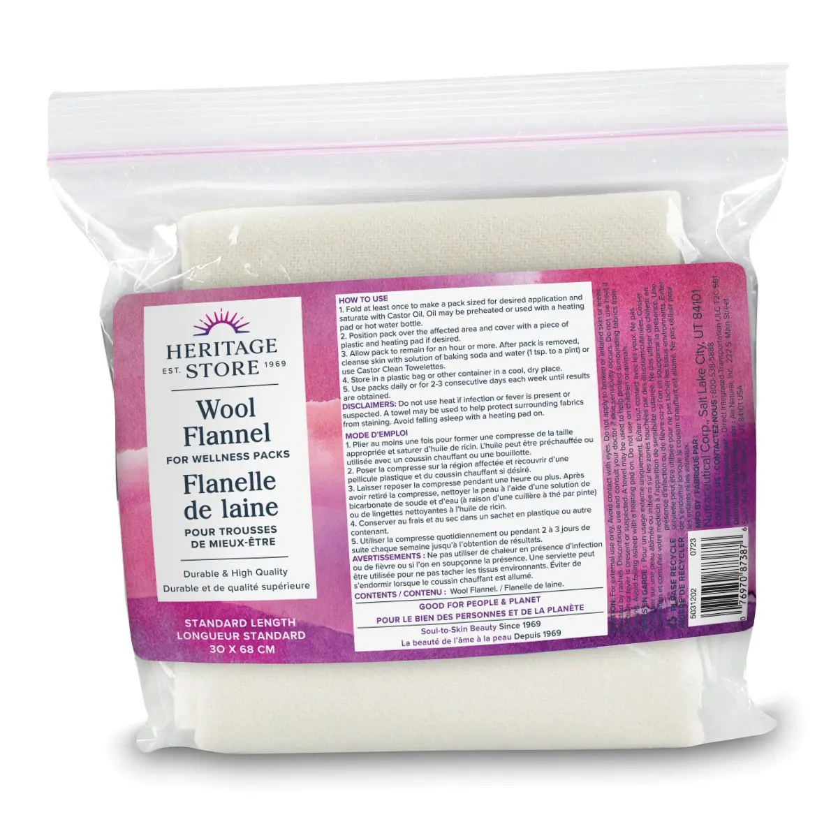 Designed to help castor oil more deeply absorb into your skin, Heritage Store Wool Flannel’s strong absorption quality keeps the castor where you want it. Natural and unbleached, our Wool Flannel is exceptionally durable and richly textured for maximum absorption. Ideal for use as part of castor oil packs.