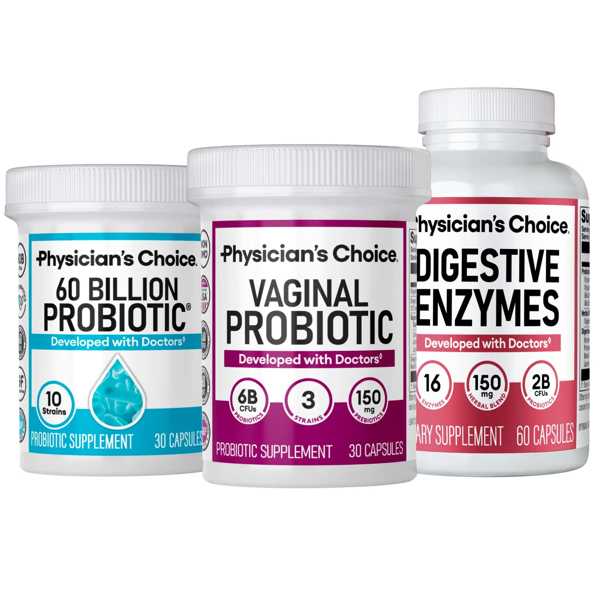 One Month Supply: 30 count Vaginal Probiotic + 30 count 60 Billion Probiotic + 60 count Digestive Enzymes