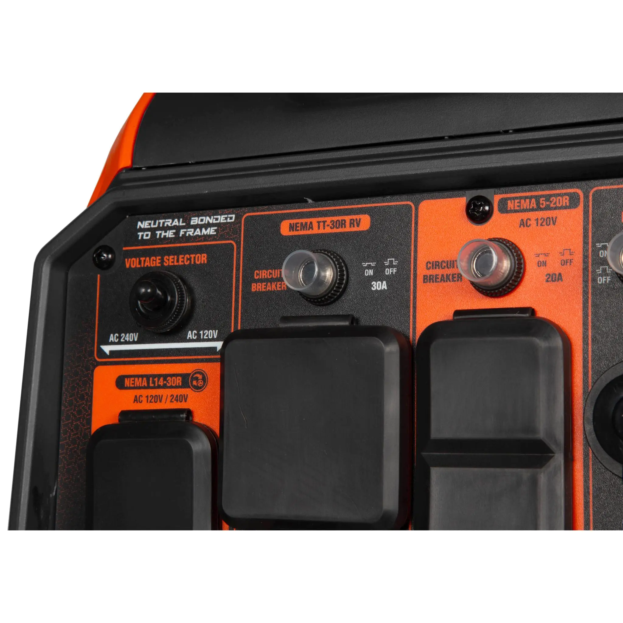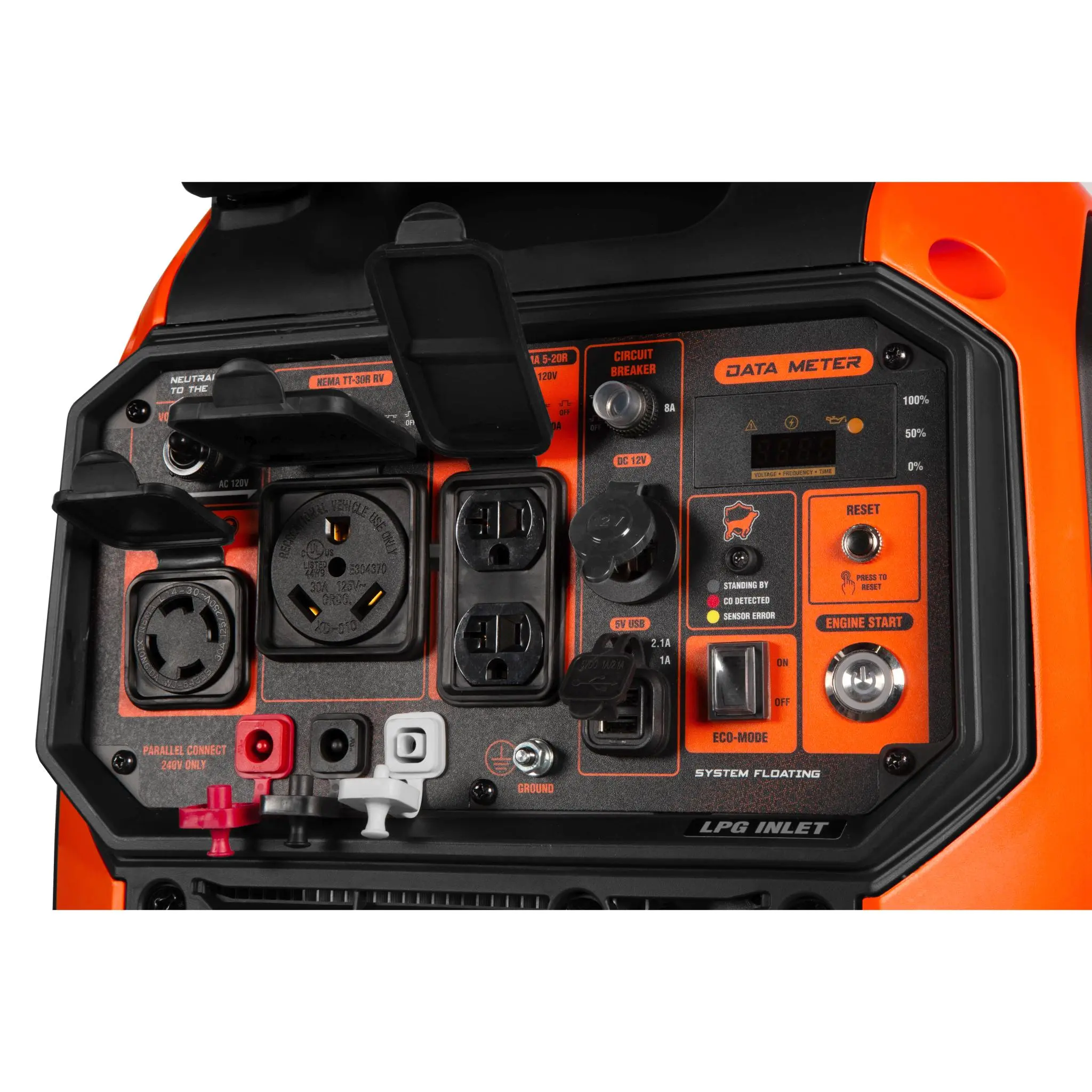 ·Includes fuel shut-off to help limit maintenance, onboard wheels, a telescoping pull handle, one L14-30R 120V/240V receptacle, two three-prong 120V receptacles, one TT-30R RV receptacle, one 12V DC receptacle, two 5V USB ports, a voltage selector switch, a tool-free LPG quick-connector, a six-foot-long LPG regulator hose, and a three-year warranty