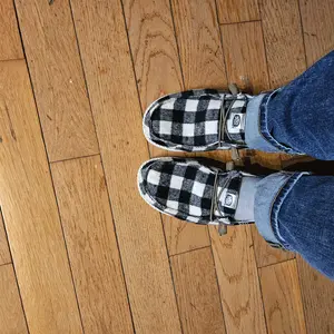 So comfortable and the classic black and white buffalo plaid is so appealing.