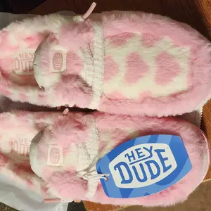 Absolutely love these Slippers I have the pink pair cheetah pair brown pair & now these cute pink heart pair so comfy nice sole to wear outside also … Love Hey Dude’s ❤️