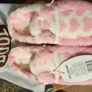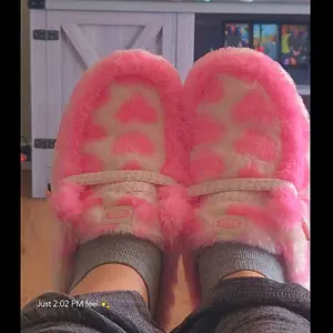 My boyfriend surprised me with the New Pink Wendy Heart slippers for Valentine’s and I’m obsessed! 😍 They even arrived early. So fluffy, my FAVORITE pink, and easy to slip on & off. The gold heart charm is the cutest touch. Plus, the hard bottoms make them perfect for inside or outside wear! 💕🌸