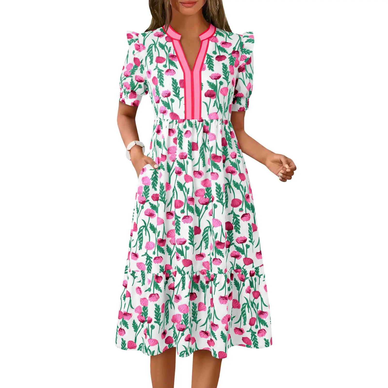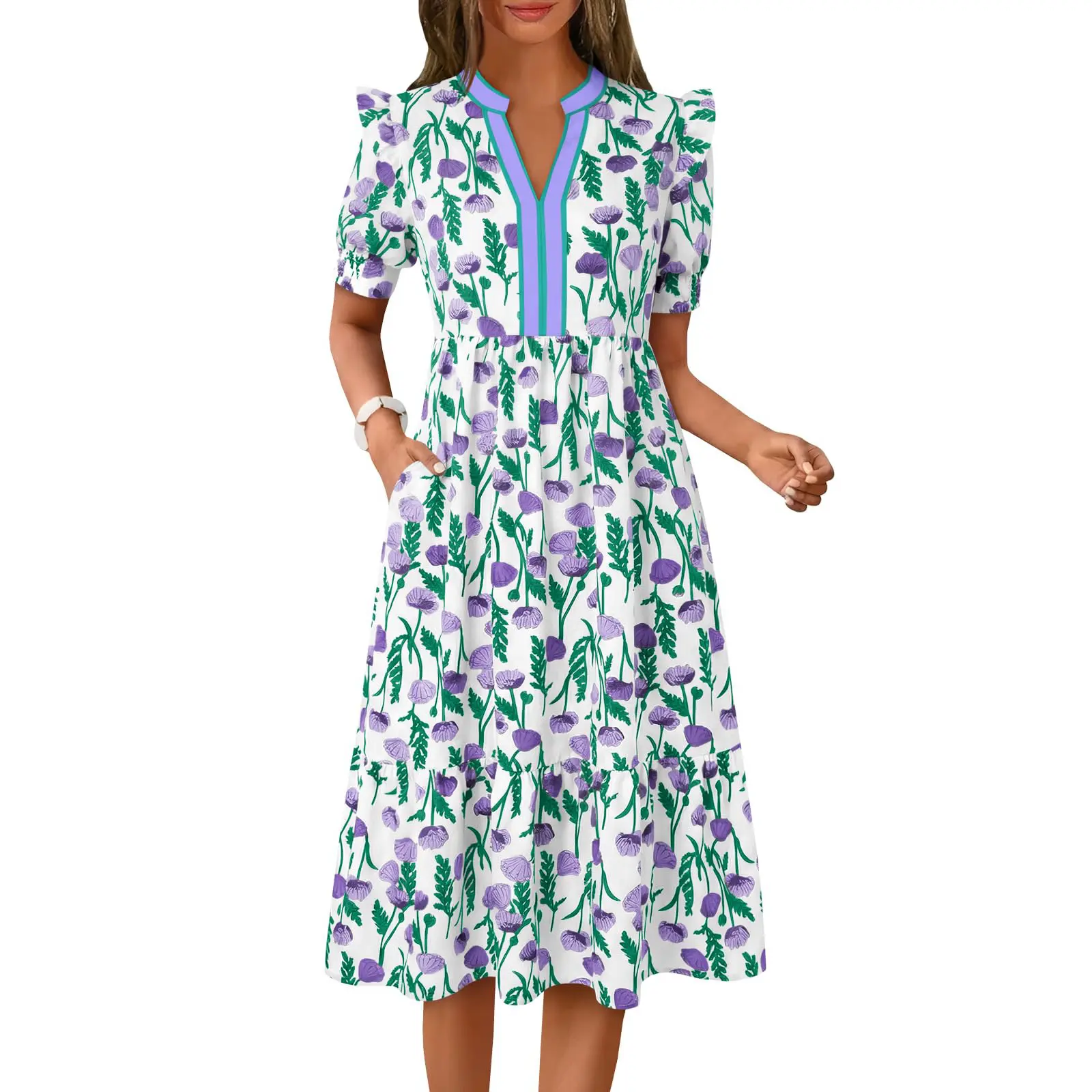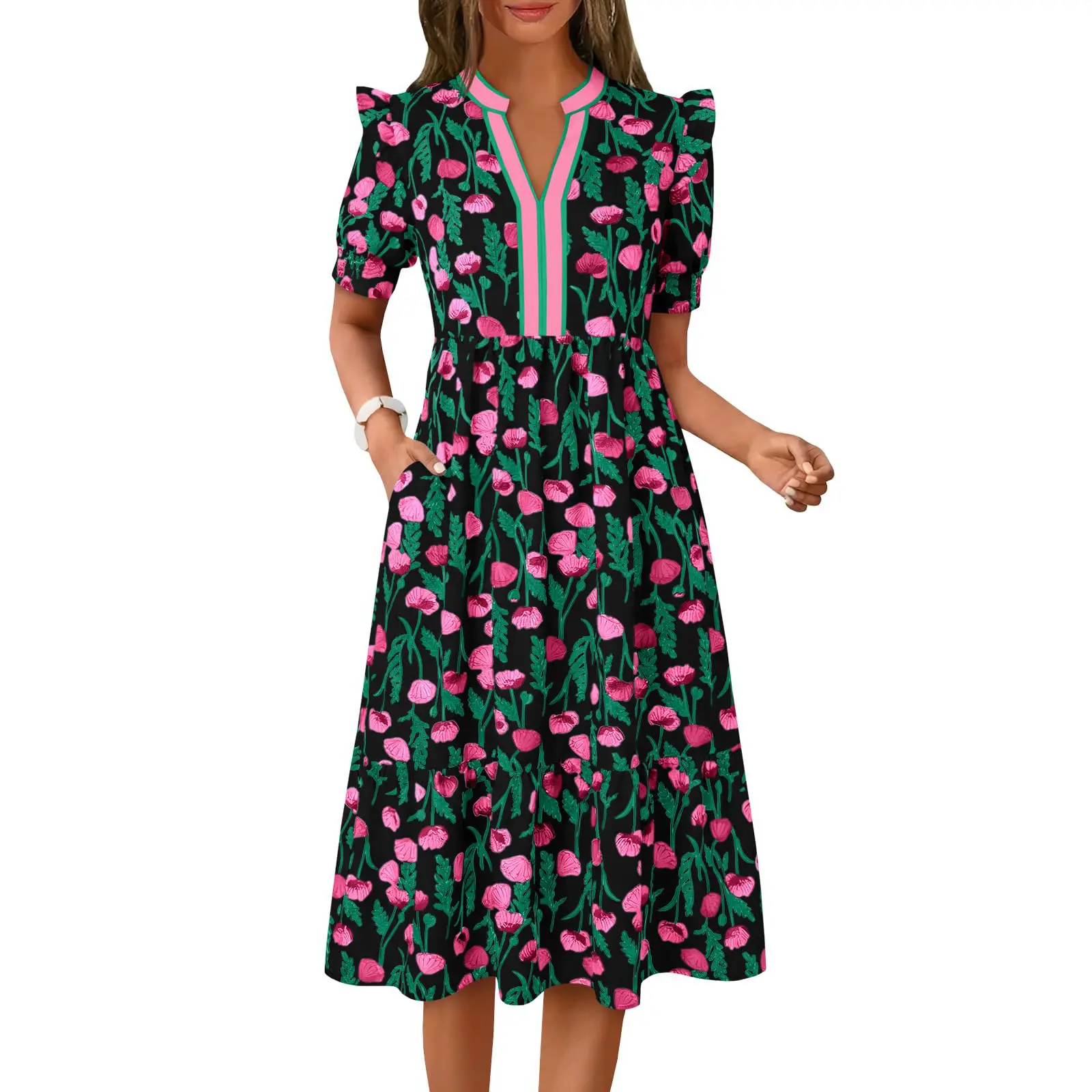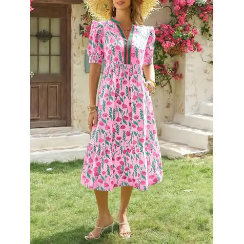 Elegant and Romantic Floral: This long dress features a refreshing floral print that's instantly reminiscent of summer; Combined with a flowing a line hem and a midi length, it exudes a sense of elegance and bohemian romance