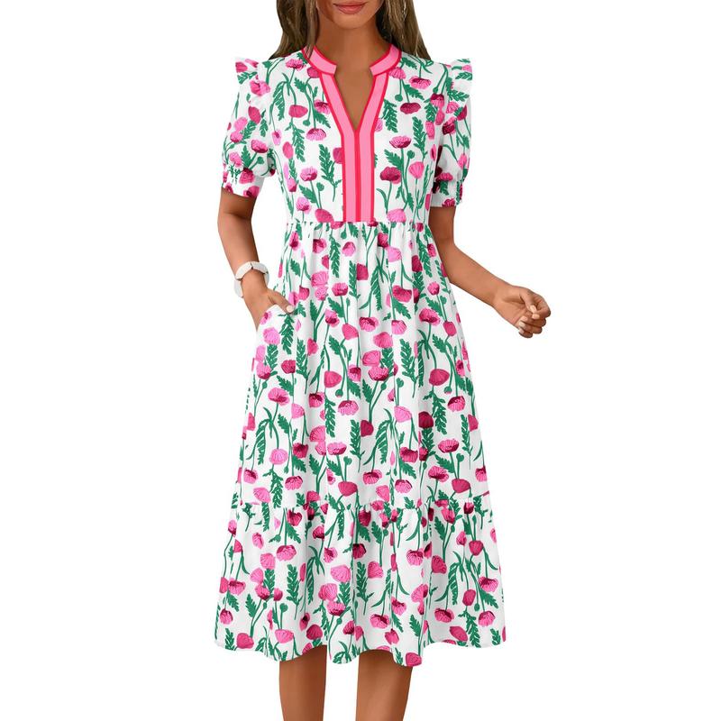 Versatile: This floral dress easily pairs well with heels, sandals, flats, boots, hats, bags, and accessories for a variety of stylish and casual summer looks