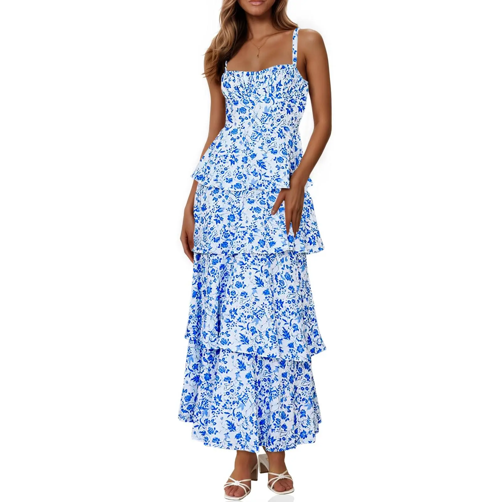 This floral Maxi dress features a gathered bust and elasticized top that not only provides a comfortable and secure fit, but also adds a touch of versatility to the neckline. The gathering creates a flattering effect, punctuating the bust area with subtle yet stylish style. This design element ensures the dress flatters your figure while maintaining a chic, effortless look.You can dance the night away at a summer wedding and stroll along the beach.