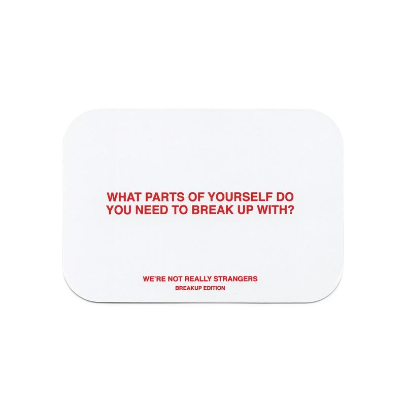 my friend and i both got broken up with in the same time frame, so we played these cards together. it was a little awkward at first but eventually we found not only that the prompts helped us channel our thoughts but also made it easier to tell each other about what was hurting.