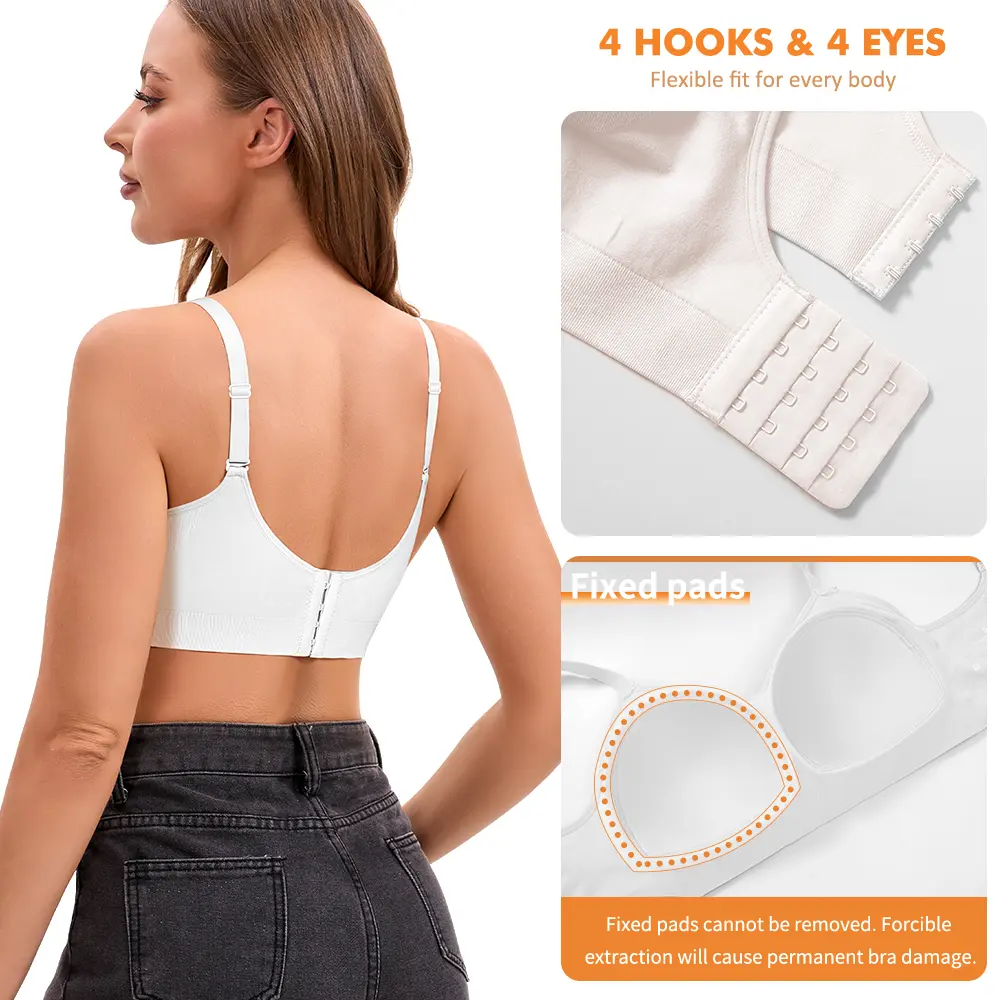 ·Sewn-in Padded DesignBuilt-in cups stay securely in place, with a wider underband that wraps snugly around your ribcage for lasting comfort and support—no shifting, no adjusting.