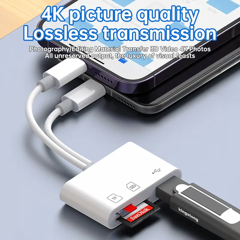 ·[Dual slot design]: Lightning to USB Adapter compatible with SD, SDHC, SDHC, SDXC, Micro SD, Micro SD, Micro SD, Micro SDHC, Micro SDXC cards
