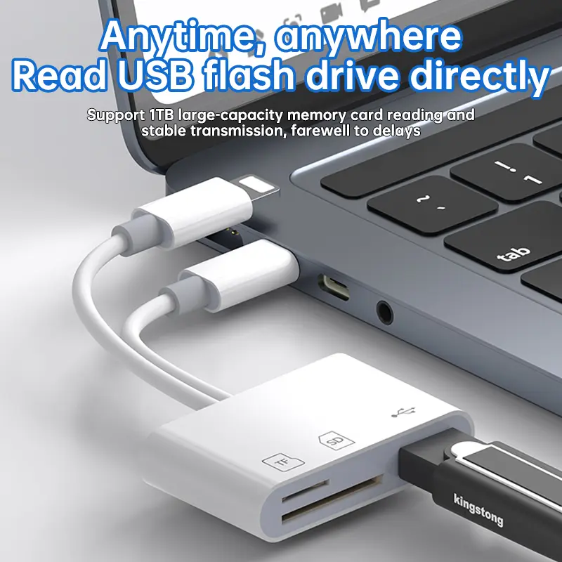 ·[Plug and Play]: The micro SD card adapter is a convenient and easy-to-use device that allows you to transfer data between your memory cards, USB Flash Disk(Supports a maximum of 1TB USB flash drive and USB hard drive) and your iphone, ipad. It supports SD and TF memory cards, making it compatible with a wide range of devices. With no need for additional drivers or software