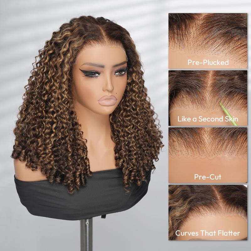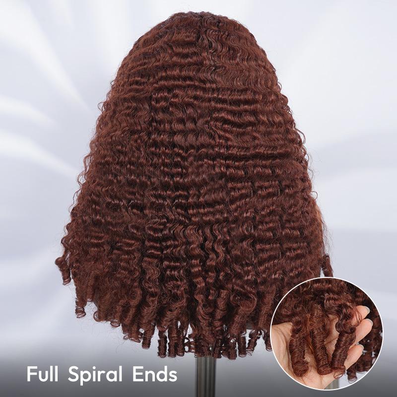 [Burmese Curly] West Kiss Glueless Reddish Brown Burmese Curly 7x5 Lace Closure Wigs Human Hair Pre Cut Pre Plucked with Natural Hairline FebruaryFaves