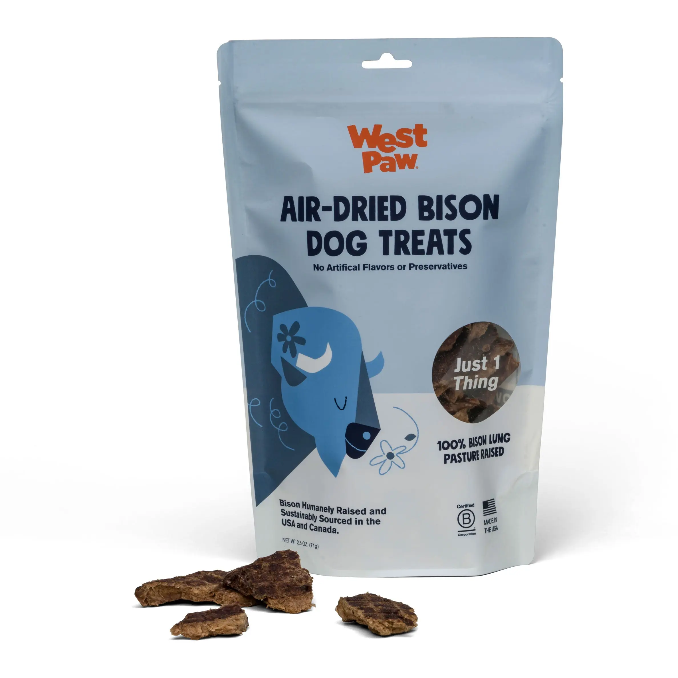 WestPaw Air Dried Dog Treats - Dogs will start their own stampede if it means they can get to these treats quicker. Our Air-Dried Bison Lung Dog Treats have a chewy but sturdy texture and are easy to break into smaller snacks. Bison is naturally high in protein, B vitamins, and omega 3 fatty acid, yet low in fat. These pasture-raised, majestic beasts are sustainably sourced in the US and Canada.