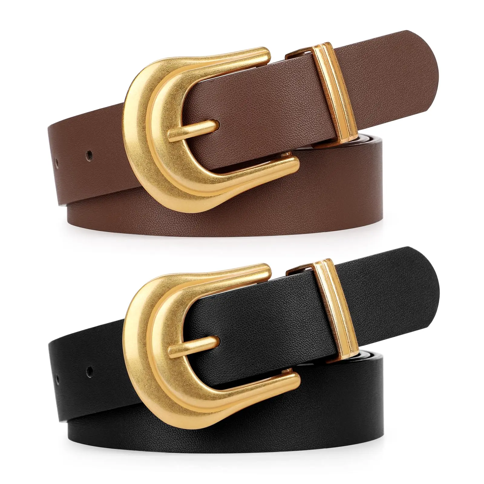 ·Soft Faux Leather Belt: Belts for women is made of quality faux leather which is soft and malleable. Come in three colors in black, coffee,brown to offer you different choice. Comfortable and durable for your everyday wear. This women leather belt definitely is a closet staple!