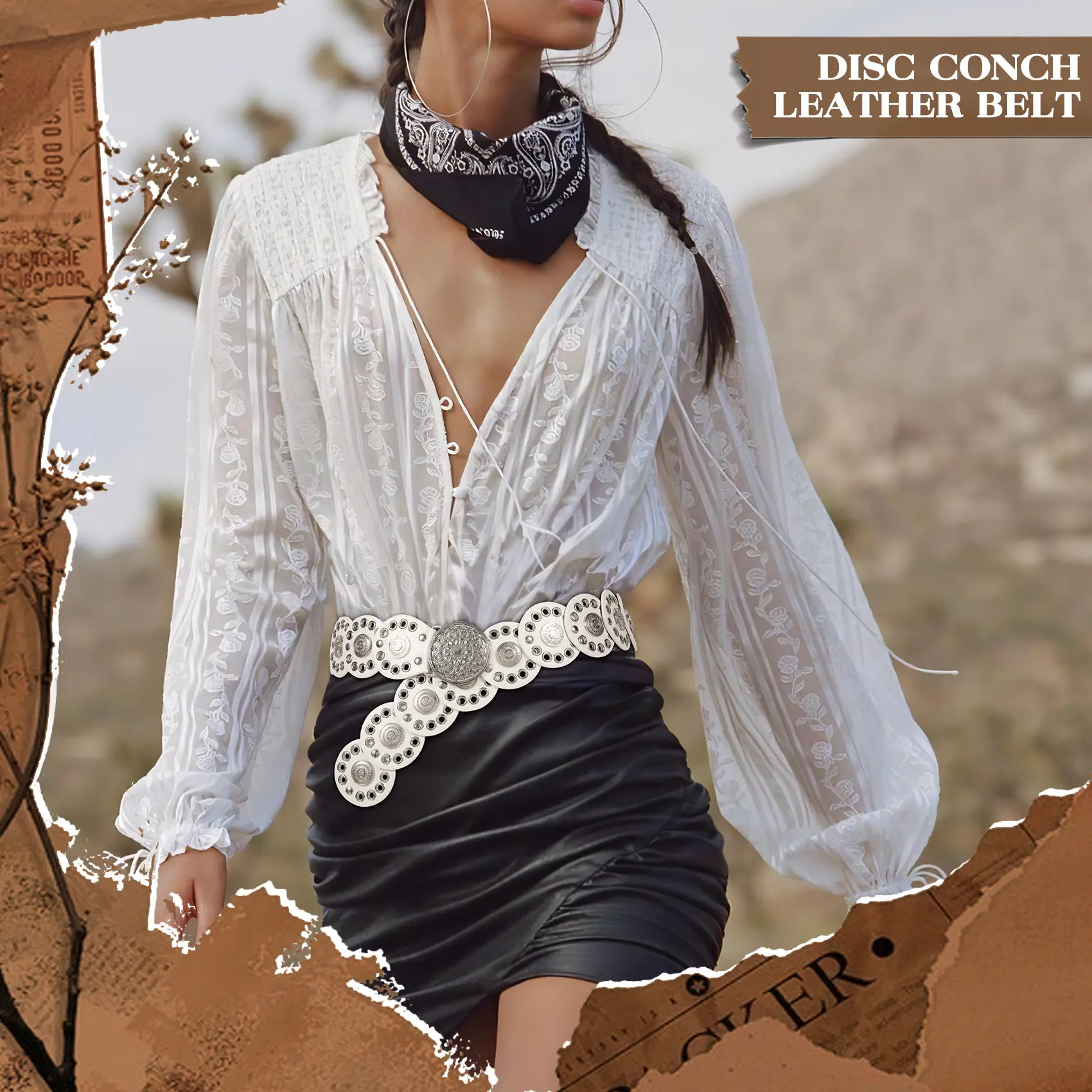 XZQTIVE Women Western Vintage Leather Belt Western Disc Belts Ladies Western Belt Boho Belt for Dresses Jean design belt denim belt