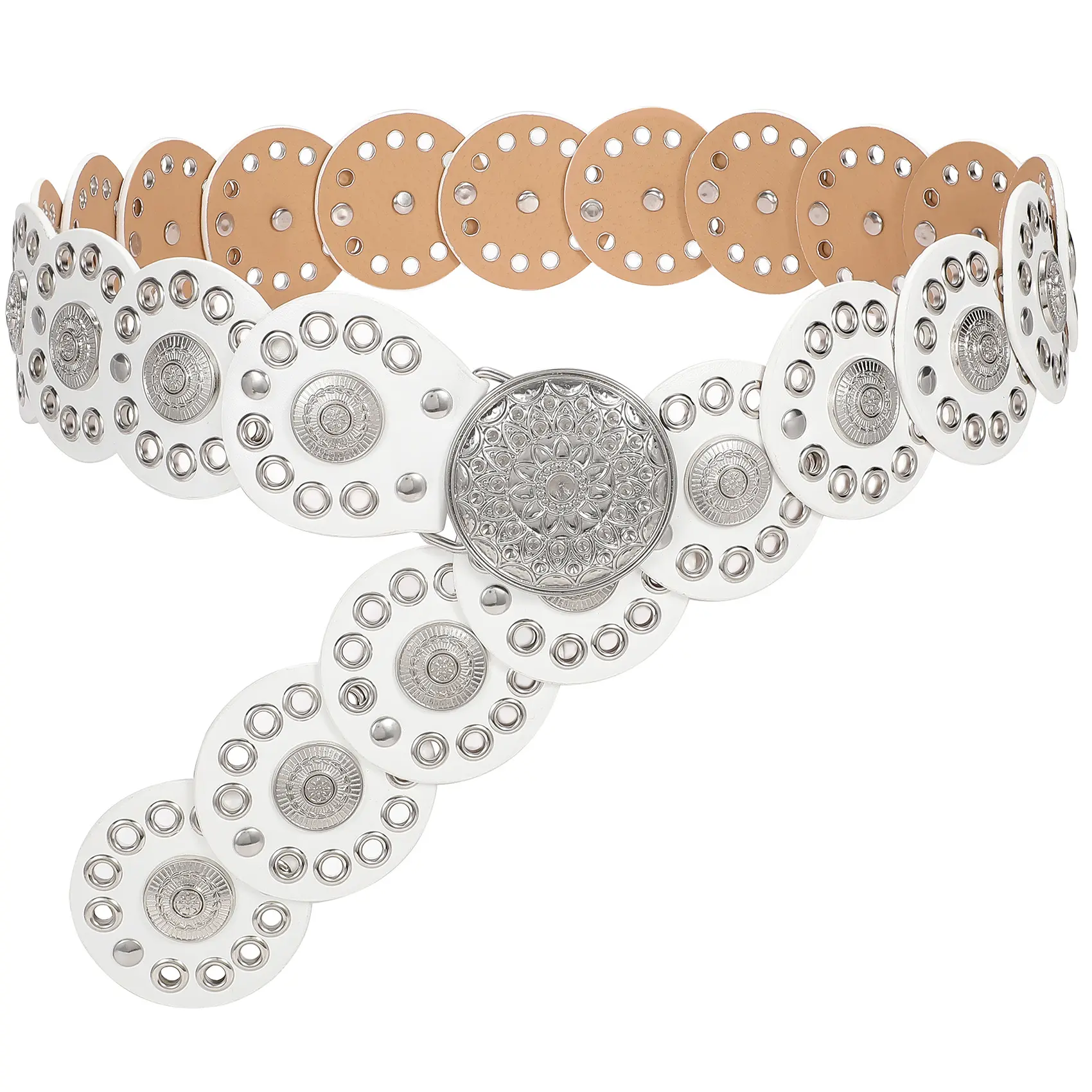 Boho Big Belts, Oval Studded Concho Belt, Y2K, Hippie Retro Vintage Unisex Belts, 90s Vintage Faux Leather Disc Belts, Whimsical Wicca Belts, Vintage Fashion