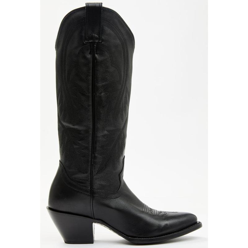Pointed toe. Pull tabs. Leather upper. Western embroidery design on shaft. Single-stitched welt. Western heel. Leather outsole with rubber heel cap. Solid black design. 14. Handcrafted by highly skilled boot artisans.