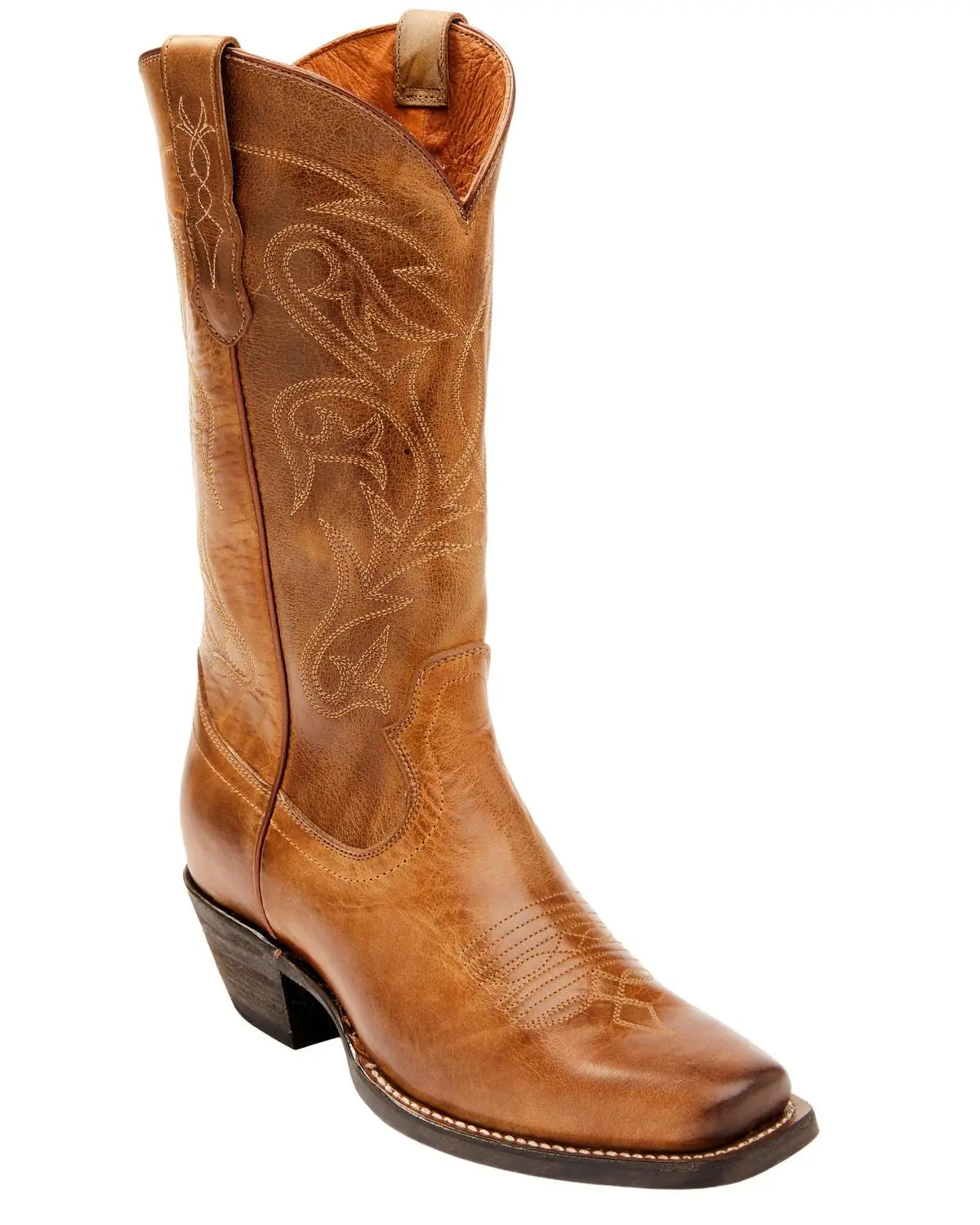 Full-grain leather upper with leather lining. 12" shaft. Square toe. Western heel. Rubber performance outsole with signature "Free To Roam" logo. Leather 3/4" welt construction. Comfort EVA removeable insole. Handcrafted by highly skilled boot artisans. Imported. Tan with western embroidery on shaft.