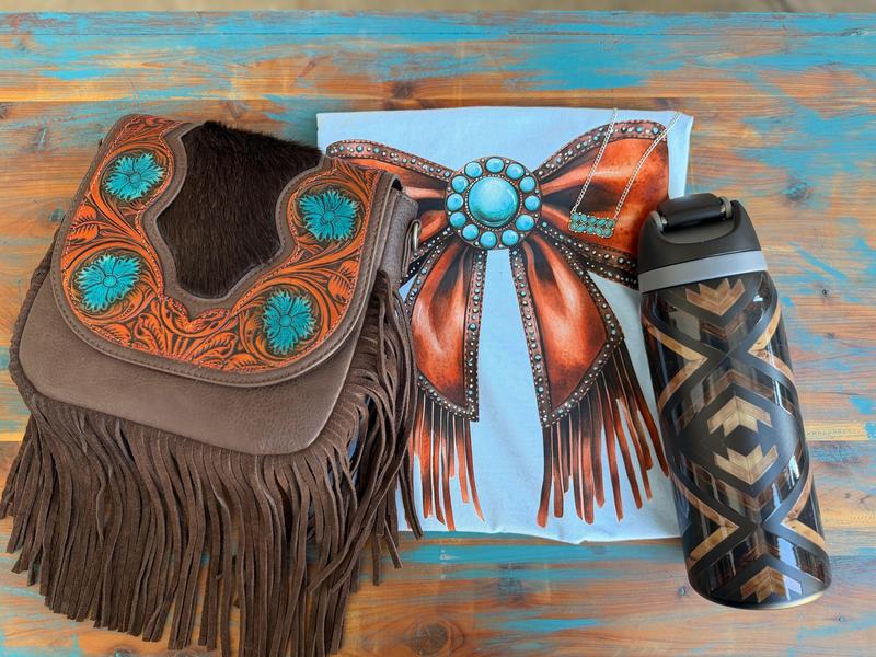 Characteristics: You get a beautiful bag, unique tumbler, a piece a turquoise jewelry and a tee.