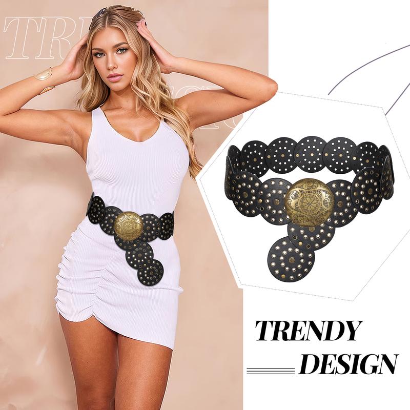 Design & Features - Round Buckle: Gorgeous, antique finish. - Studs: Beautifully etched on the waistband. - Versatile: Adds style to daily casual, party, and festival outfits.