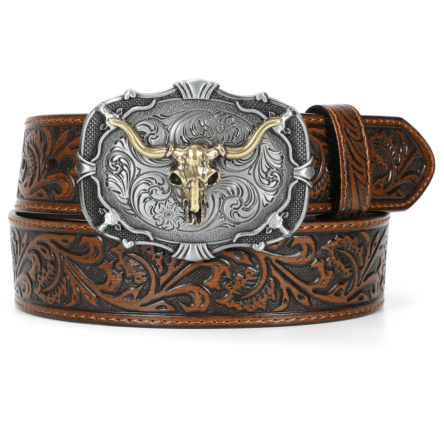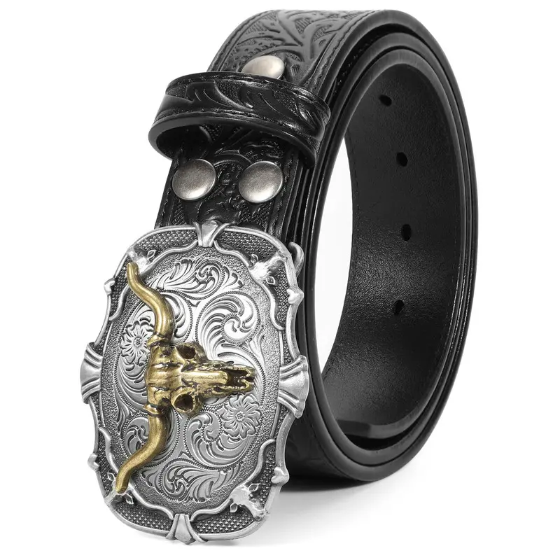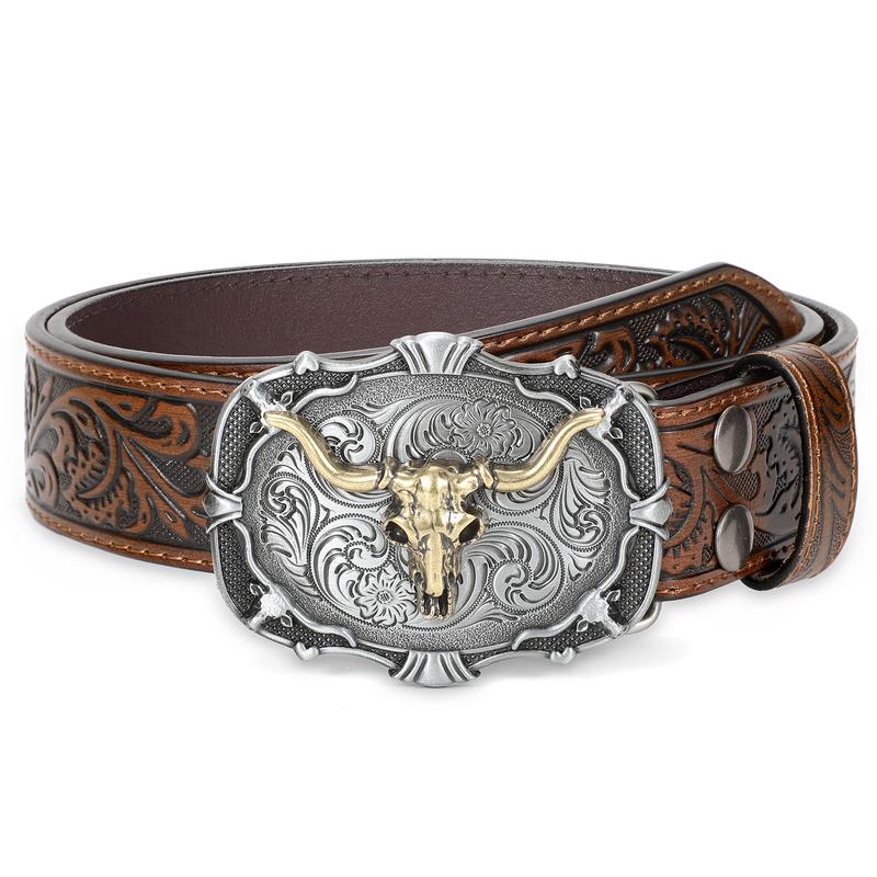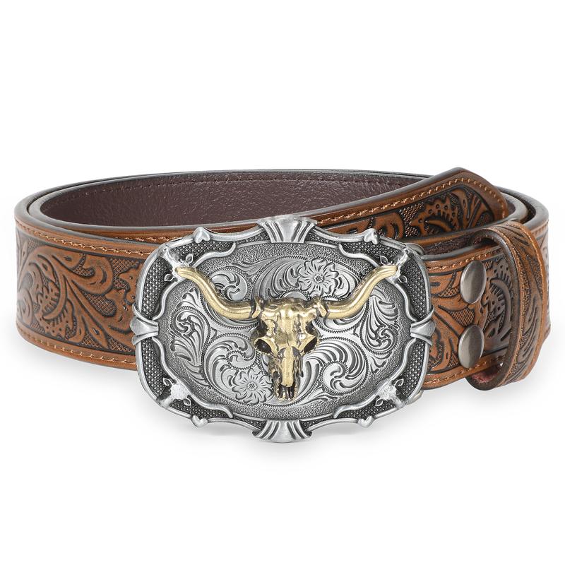 Unique Carving Patterns: High quality mens western leather belt, exquisite oiledge craft, fit and comfort. Western-inspired leather buckle belt featuring embossed pattern adds the perfect touch to any pair of jeans, pants. Cowboy cowgirl belts for men and women.