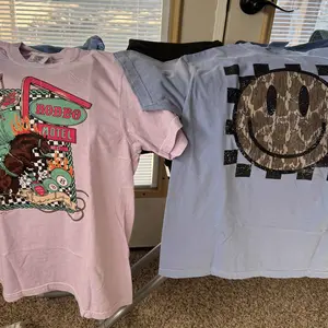 This is my 3rd mystery T-shirt bundle and so far I’ve not received duplicate shirts I love these and are very happy for the most part, but one of the shirts in my most recent order is not something I would wear. It looks like someone took a pic of cows in a field and used photoshop to create the t-shirt image. It is odd looking in my opinion. Will this prevent me from ordering another mystery t-shirt bundle in the future? No, absolutely not. The shirts however are great quality sold and very comfortable. ❤️ this small business boutique. .
