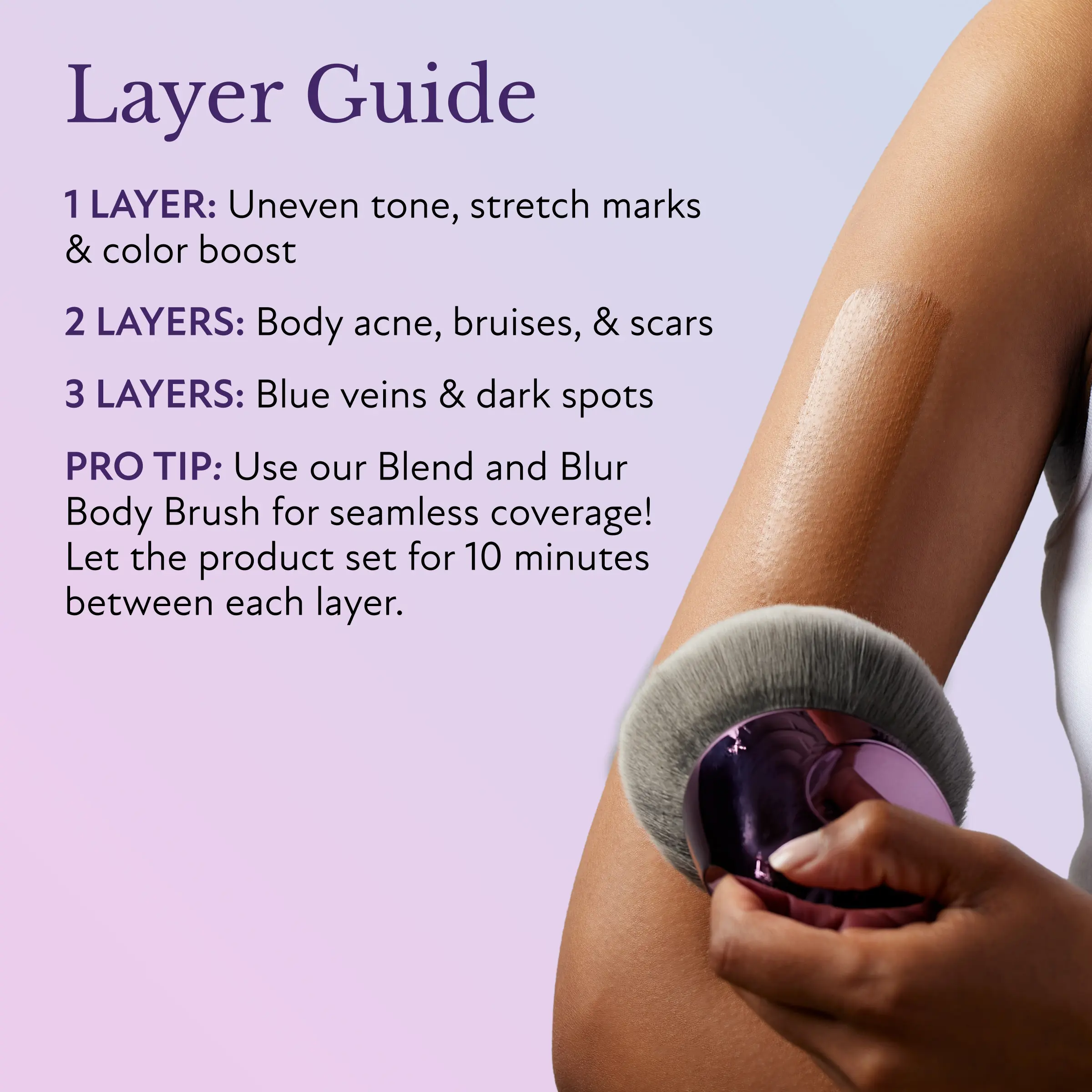 ·Apply: Apply the perfector and blend seamlessly with your hands or a large body brush (sold seperately).
