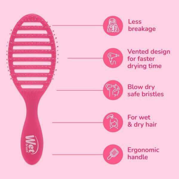 Speed Dry Brush Gently loosens knots while you blow-dry—without pulling or snagging—keeping hair strong & healthy.