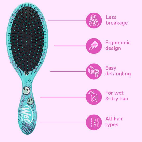 Celebrate your favorite Halloween Town duo and a little merry misadventure with the Wet Brush x The Nightmare Before Christmas collection. Bring a little mischief to your hair care with Jack Skellington’s brush, gliding through tangles like magic while channeling the Pumpkin King’s playful spirit. Ultra-soft IntelliFlex® bristles are gentle on hair and scalp - and detangle in spooky-chic style, either on wet or dry hair! The kit comes with a matching scrunchie, making this duo a true treat—no tricks needed!