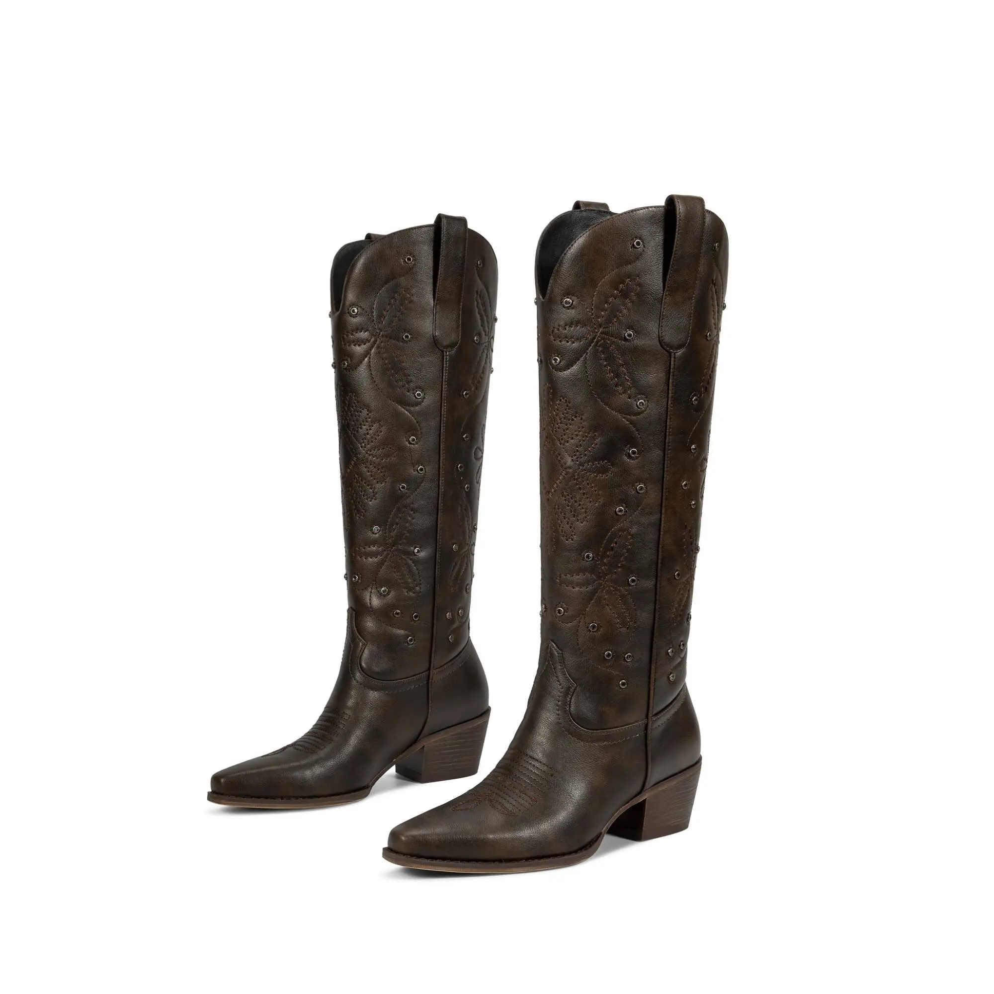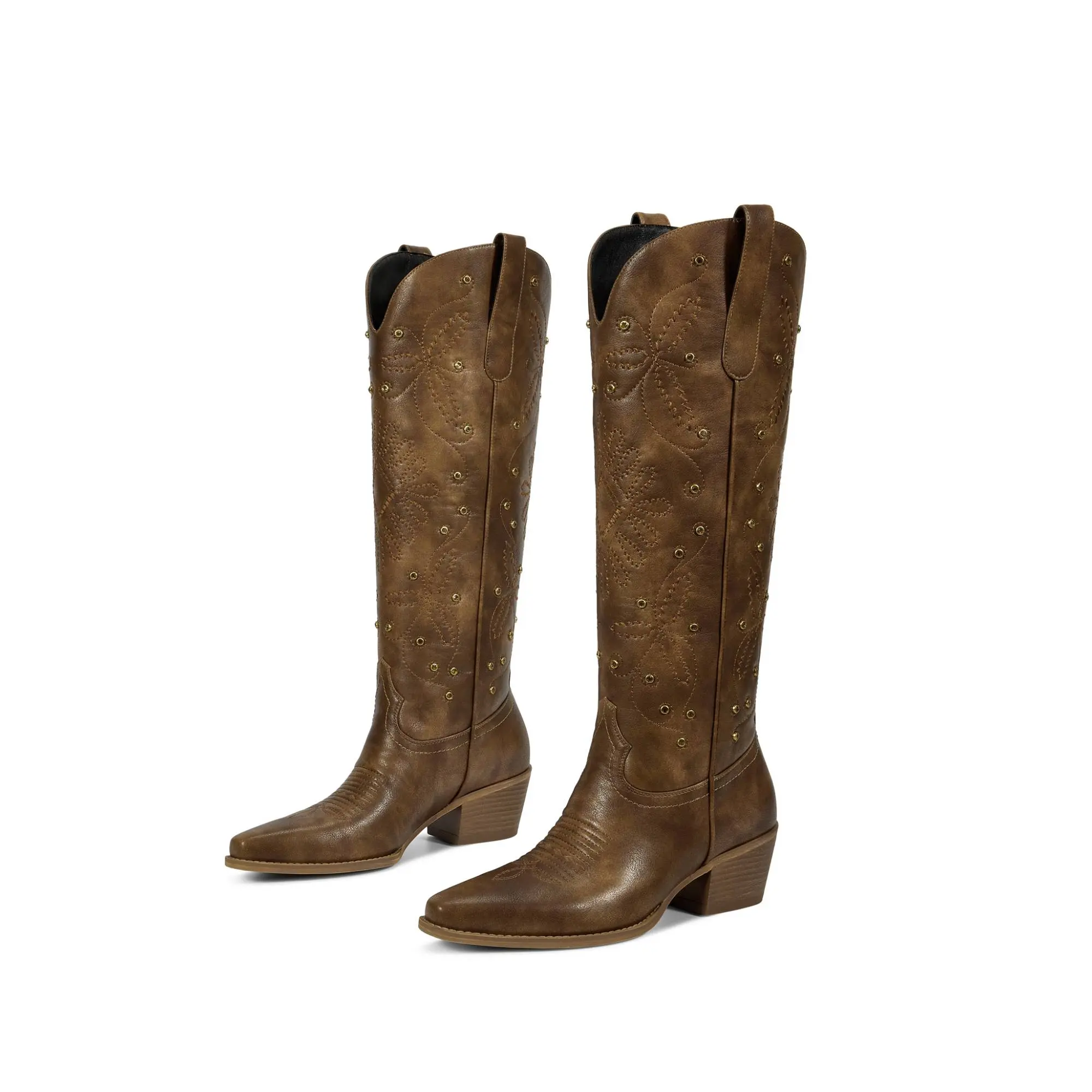 ·Western and Retro: These brown women cowboy boots feature a soft and comfortable ultra-fine lining, characterized by rivets and western embroidery threads, with pointed toes and medium-low heels, (5.2cm/2.05in) and are perfect for a western style