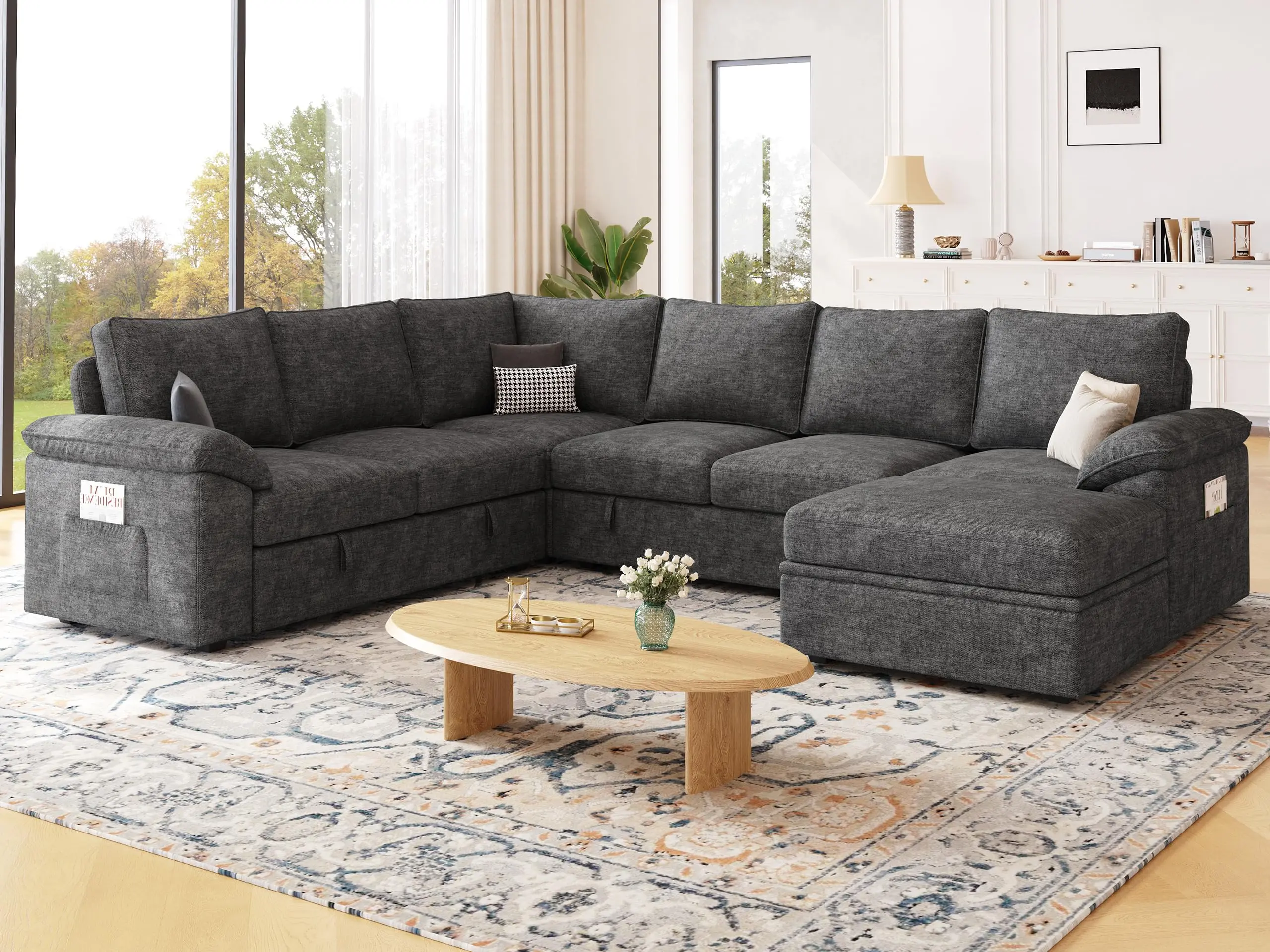 ·Pull Out Sleeper Sofa: Easily convert the sofa into a bed by simply pulling it. The Howjoe modular sofa couch comes in dark gray, beige, light gray and black, making it perfect for transforming any room into a functional guest space